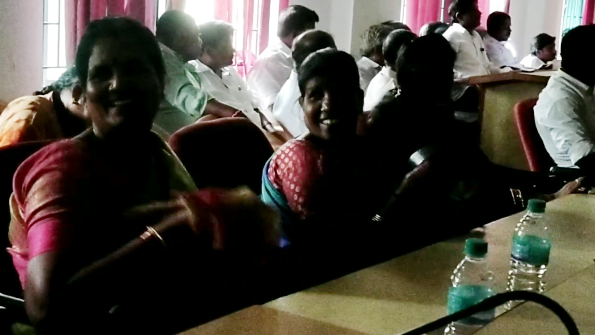 திருவள்ளூர் மாவட்டம் பூண்டி ஒன்றிய கவுன்சிலர் கூட்டத்தொடரில் தீடீர் மின்வெட்டு ஏற்பட்டதால் பெண் கவுன்சிலர்கள் புடவை, முந்தானை,தீர்மான நகலை கொண்டு விசிறியும் அவதியுற்றனர்