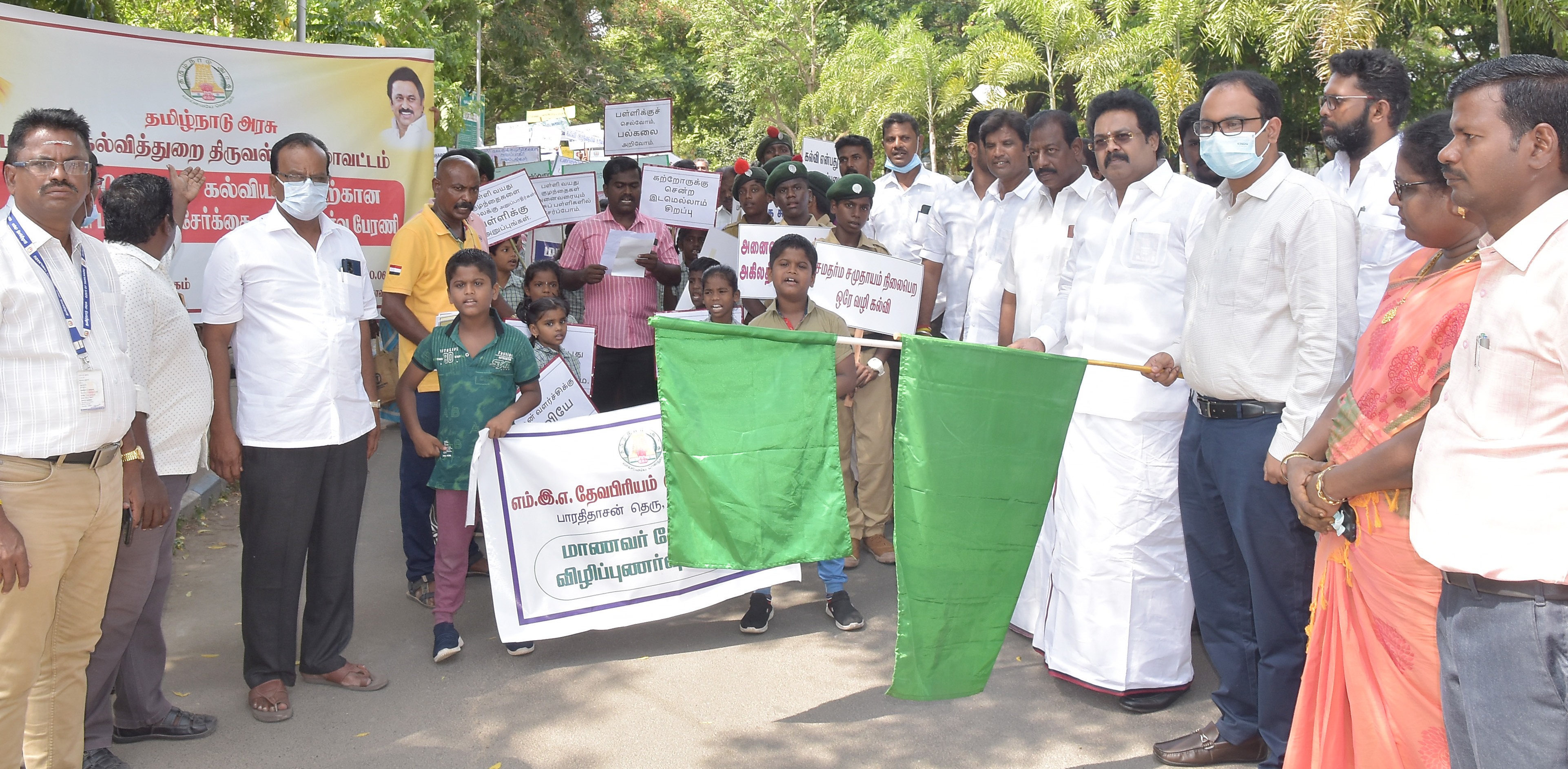 திருவள்ளூர் மாவட்டத்தில் அரசுப் பள்ளிகளில் மாணவர் சேர்க்கையை அதிகரிப்பது குறித்த விழிப்புணர்வு பேரணி