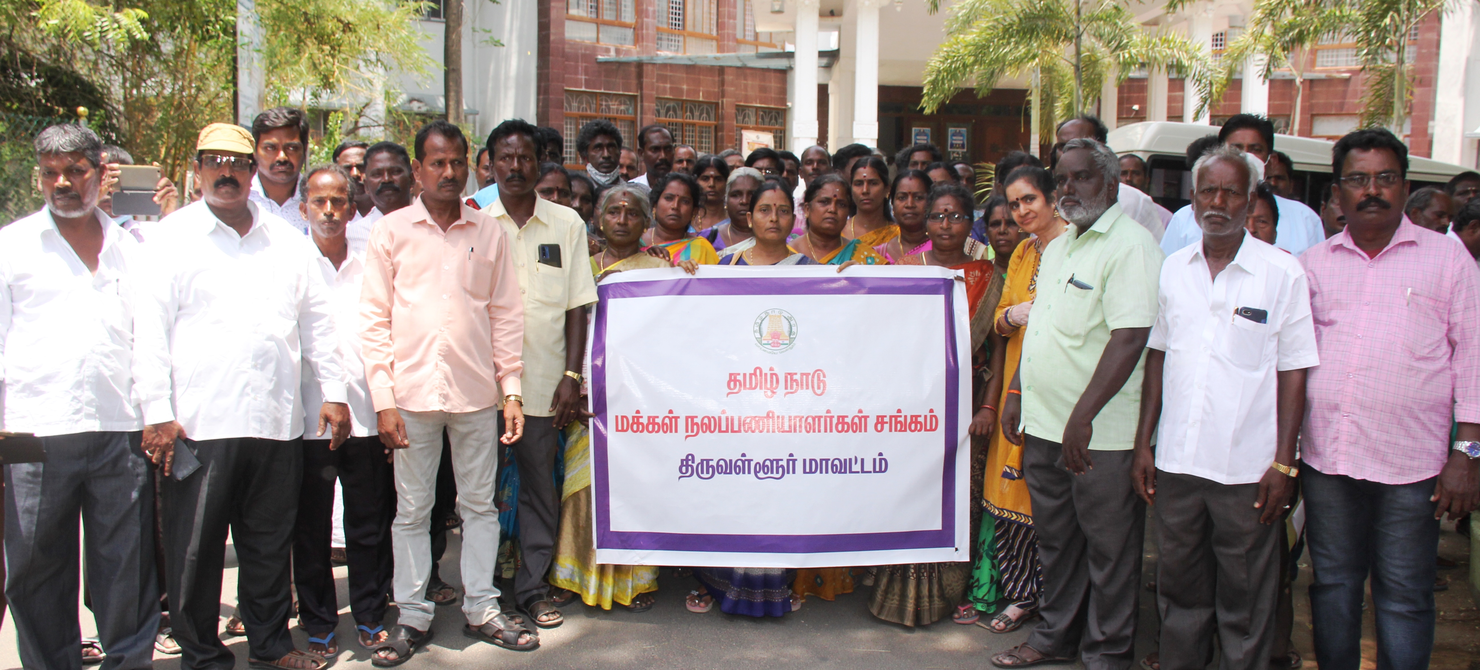 திருவள்ளூரில் காலமுறை ஊதியம் வழங்கக்கோரி மக்கள் நலப்பணியாளர்கள் மாவட்ட ஆட்சியர் ஆல்பி ஜான் வர்கீசிடம் மனு