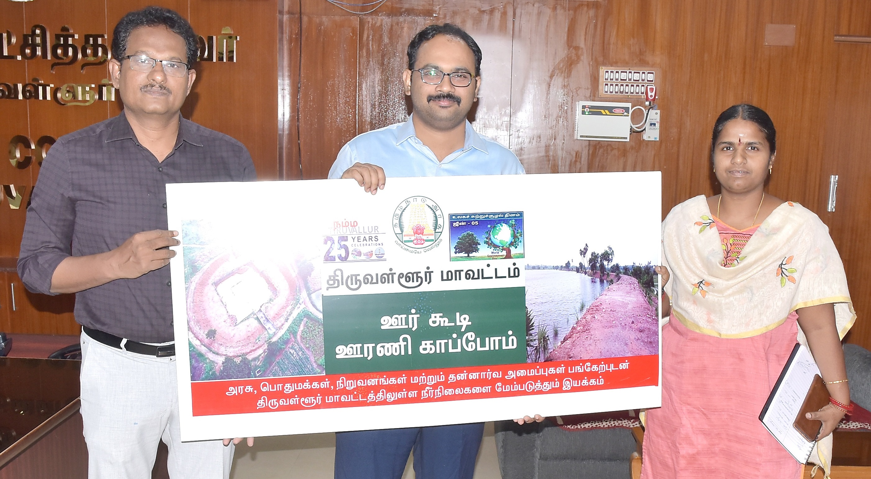 திருவள்ளூர் மாவட்டத்தில் நீர் நிலைகளை மேம்படுத்தும் வகையில் “ஊர் கூடி ஊரணி காப்போம்” என்ற இயக்கம் : விழிப்புணர்வு இலட்சினையை ஆட்சியர் ஆல்பி ஜான் வர்கீஸ் வெளியிட்டா