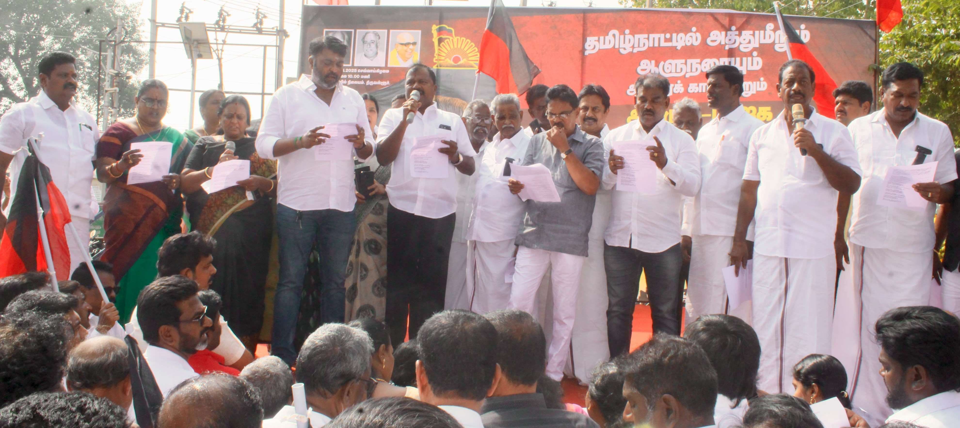 தமிழ்நாட்டில் அத்துமீறும் ஆளுநரையும் அவரைக் காப்பாற்றும் அதிமுக பாஜக கள்ளக் கூட்டணியையும் கண்டித்து திமுக சார்பில் கண்டன ஆர்ப்பாட்டம் :