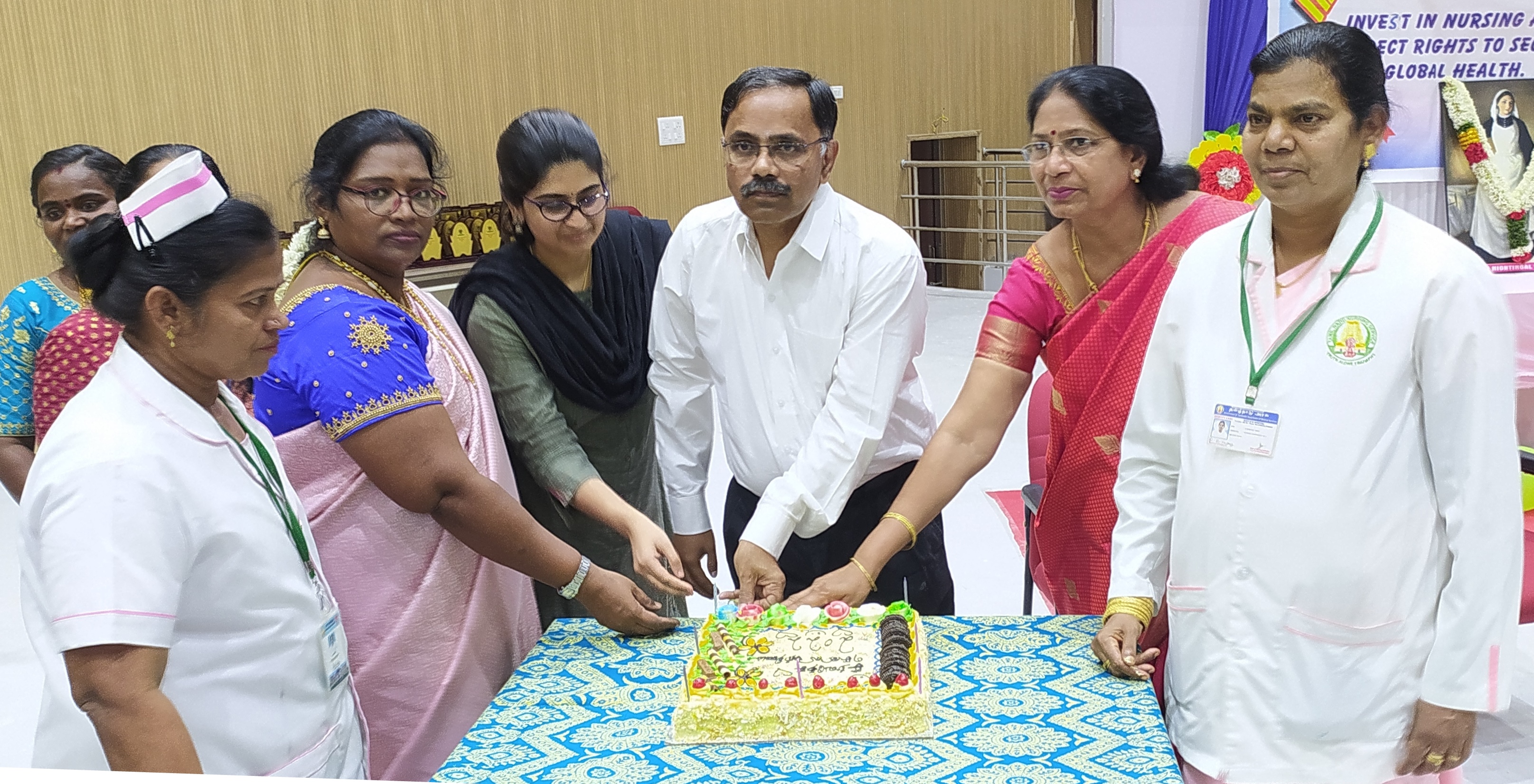 திருவள்ளூர் மருத்துவக் கல்லூரியில் உலக செவிலியர் தின விழா : கேக் வெட்டி கொண்டாட்டம் :
