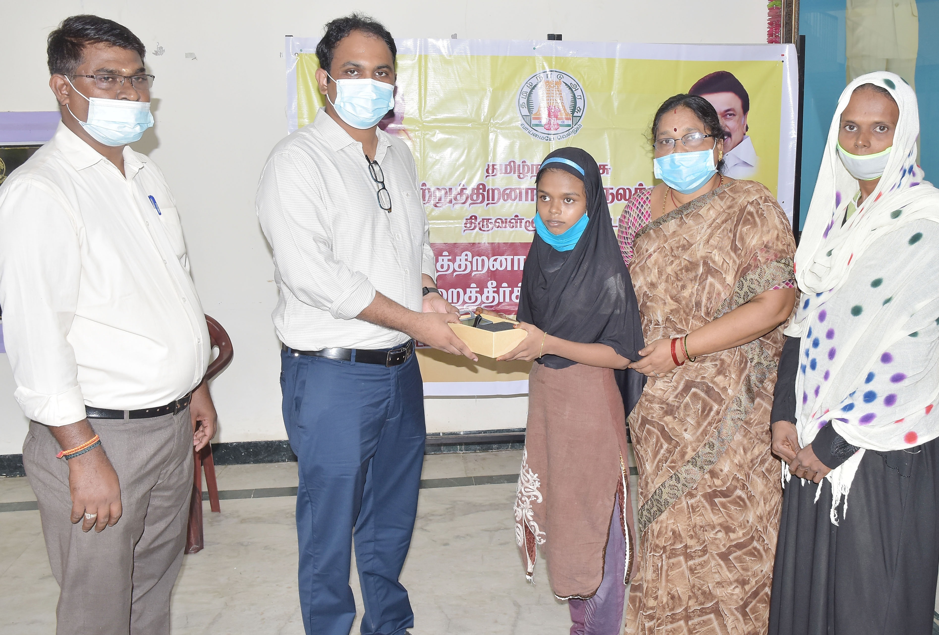 திருவள்ளூரில் மாற்றுத்திறனாளிகளுக்கு எழுத்துக்களை பெரிதாக்கி காட்டும் உருப்பெருக்கி கருவி : மாவட்ட ஆட்சியர் ஆல்பி ஜான் வர்கீஸ் வழங்கினார் :