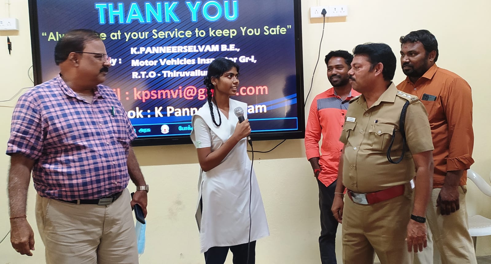 வட்டார போக்குவரத்து அலுவலகம் சார்பில் சாலை பாதுகாப்பு குறித்த விழிப்புணர்வு நிகழ்ச்சி : மாணவ மாணவிகள் ஆர்வத்துடன் பங்கேற்பு :
