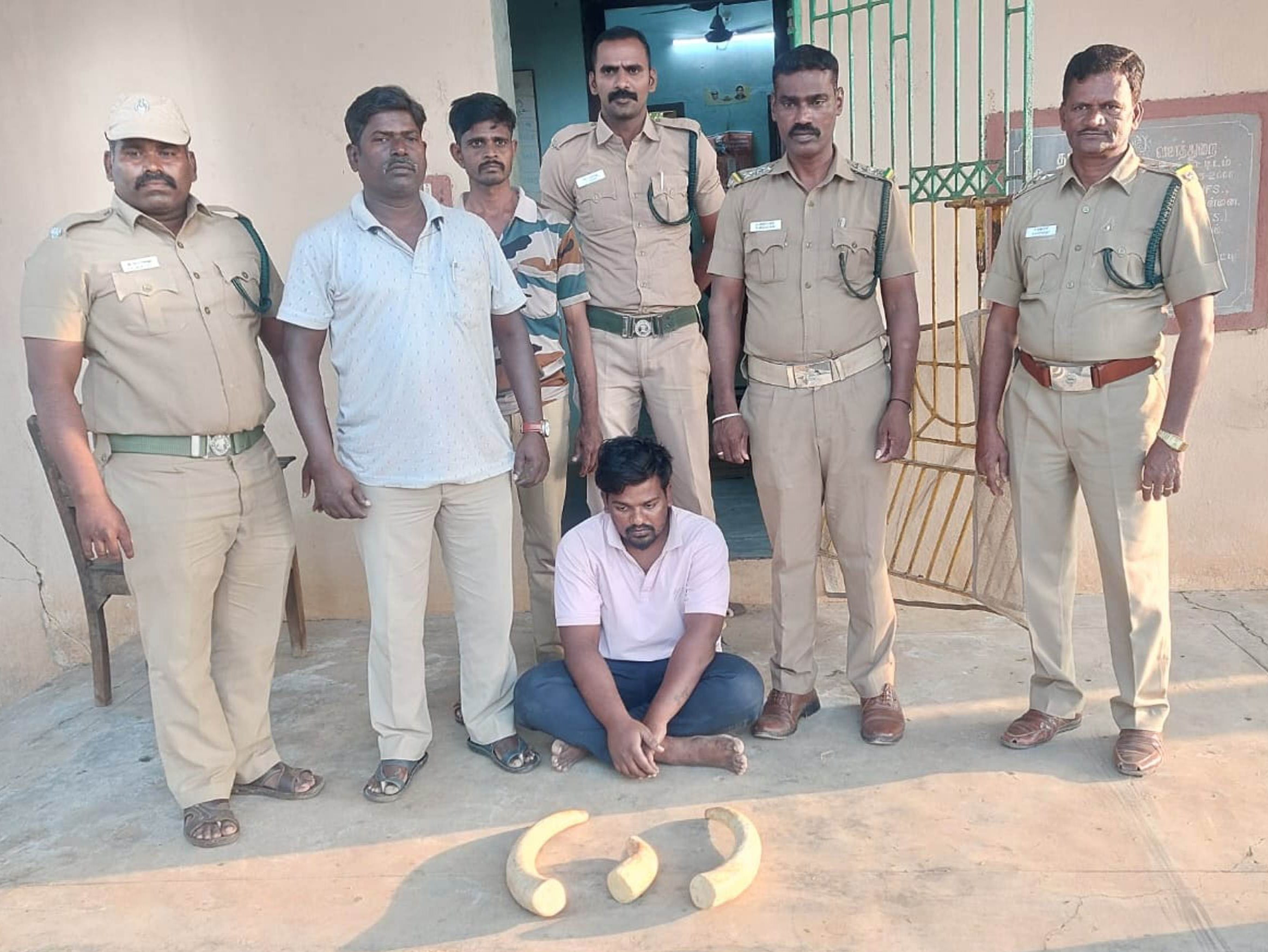 திருவள்ளூர் அருகே காரில் யானை தந்தங்கள் கடத்திய ஒருவர் கைது : 2 பேர் தப்பியோட்டம் : ரூ.50 லட்சம் மதிப்பிலான யானை தந்தங்கள் வனத்துறை பறிமுதல் :