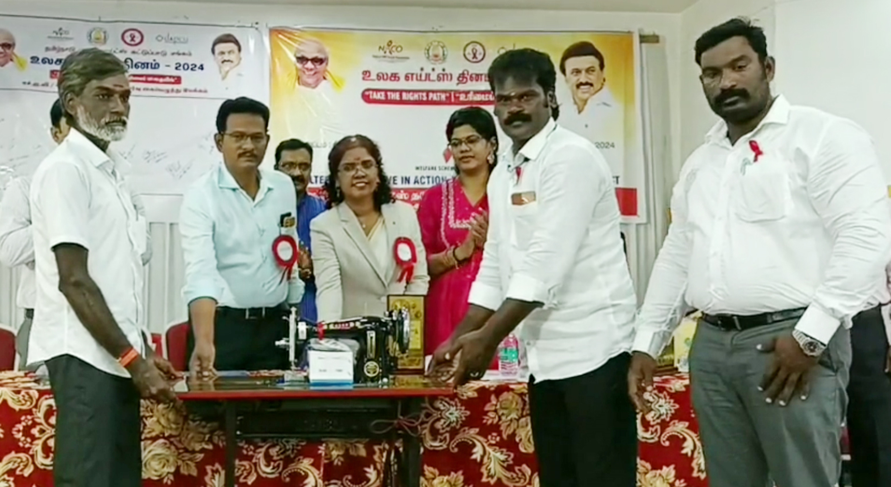 உலக எய்ட்ஸ் தினத்தை முன்னிட்டு திருவள்ளூர் மாவட்ட எய்ட்ஸ் தடுப்பு மற்றும் கட்டுப்பாட்டு அலகு சார்பில் நலத்திட்ட உதவிகளை மாவட்ட ஊரக வளர்ச்சி முகமையின் திட்ட இயக்குநர் வை.ஜெயக்குமார் வழங்கினார் :
