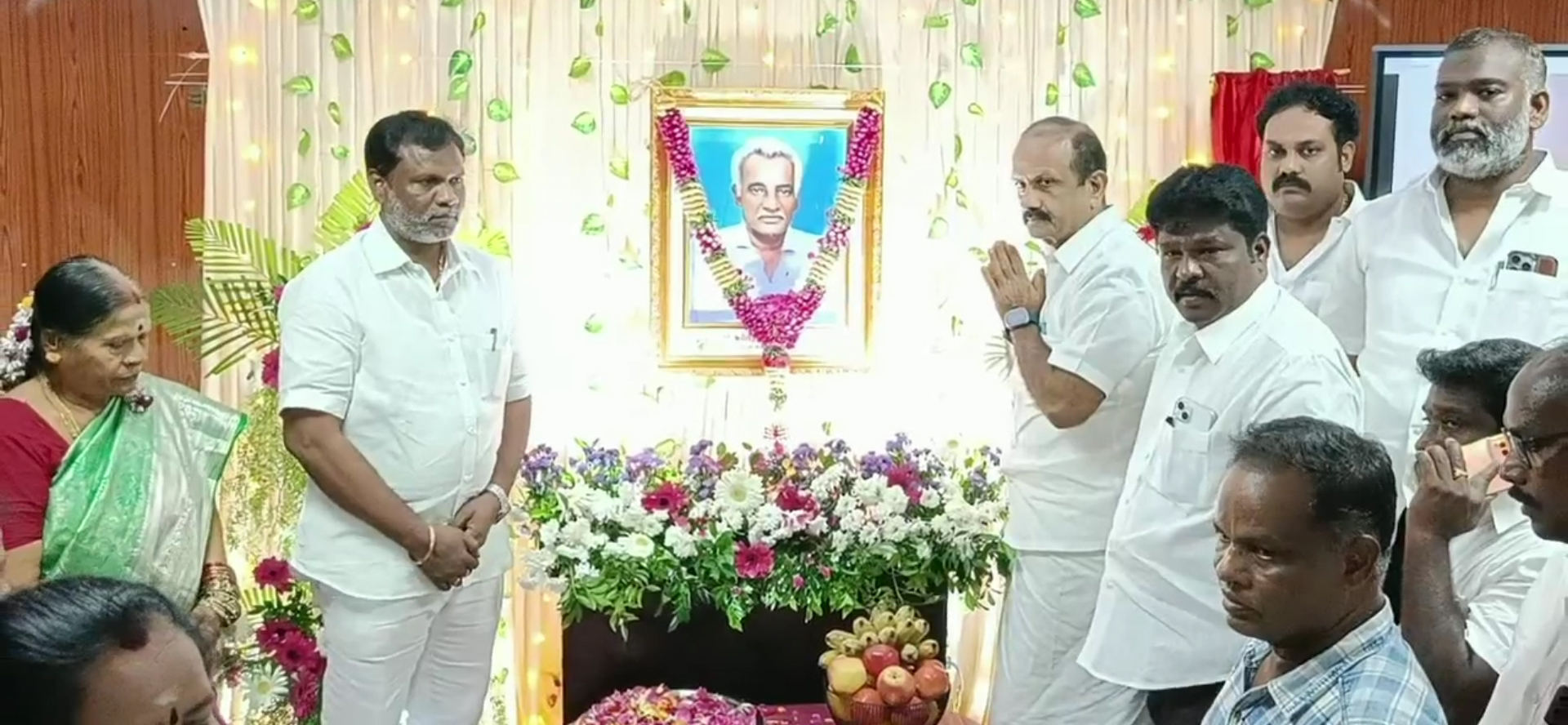 முன்னாள் ராணுவ வீரரும் திருவள்ளூர் அதிமுக நகர்மன்ற உறுப்பினரின் தந்தையுமான சுப்பிரமணியனின் திருவுருவப் படத்தை முன்னாள் அமைச்சர் பி. வி.ரமணா திறந்து வைத்து, மலர் தூவி மரியாதை :