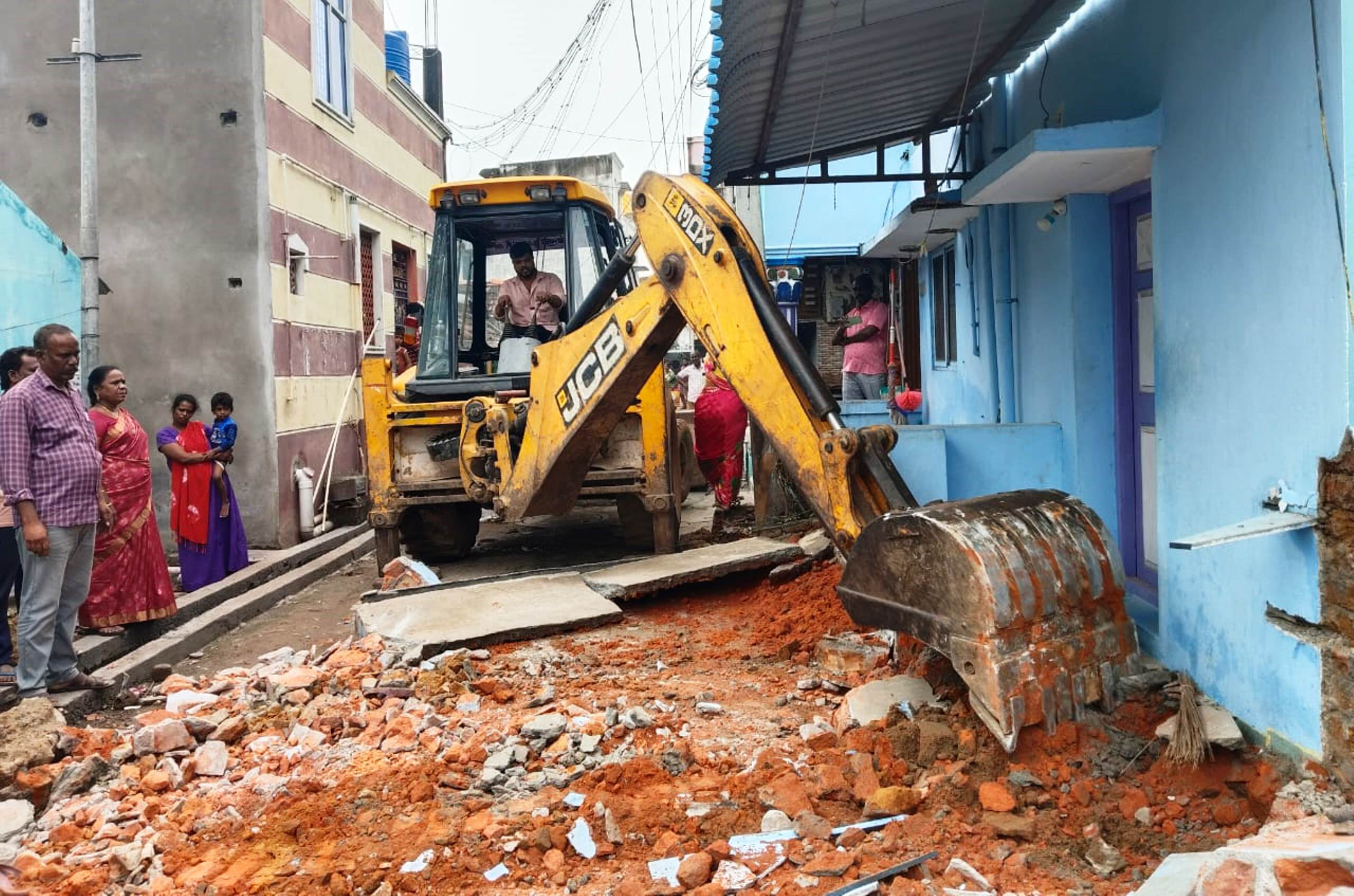திருவள்ளூர் நகராட்சி 12 வது வார்டில் போக்குவரத்துக்கு இடையூறாக இருந்த சாலை ஆக்கிரமிப்புகள் : பலத்த போலீஸ் பாதுகாப்புடன் இடித்து அகற்றம் : நகராட்சி நிர்வாகம் அதிரடி :
