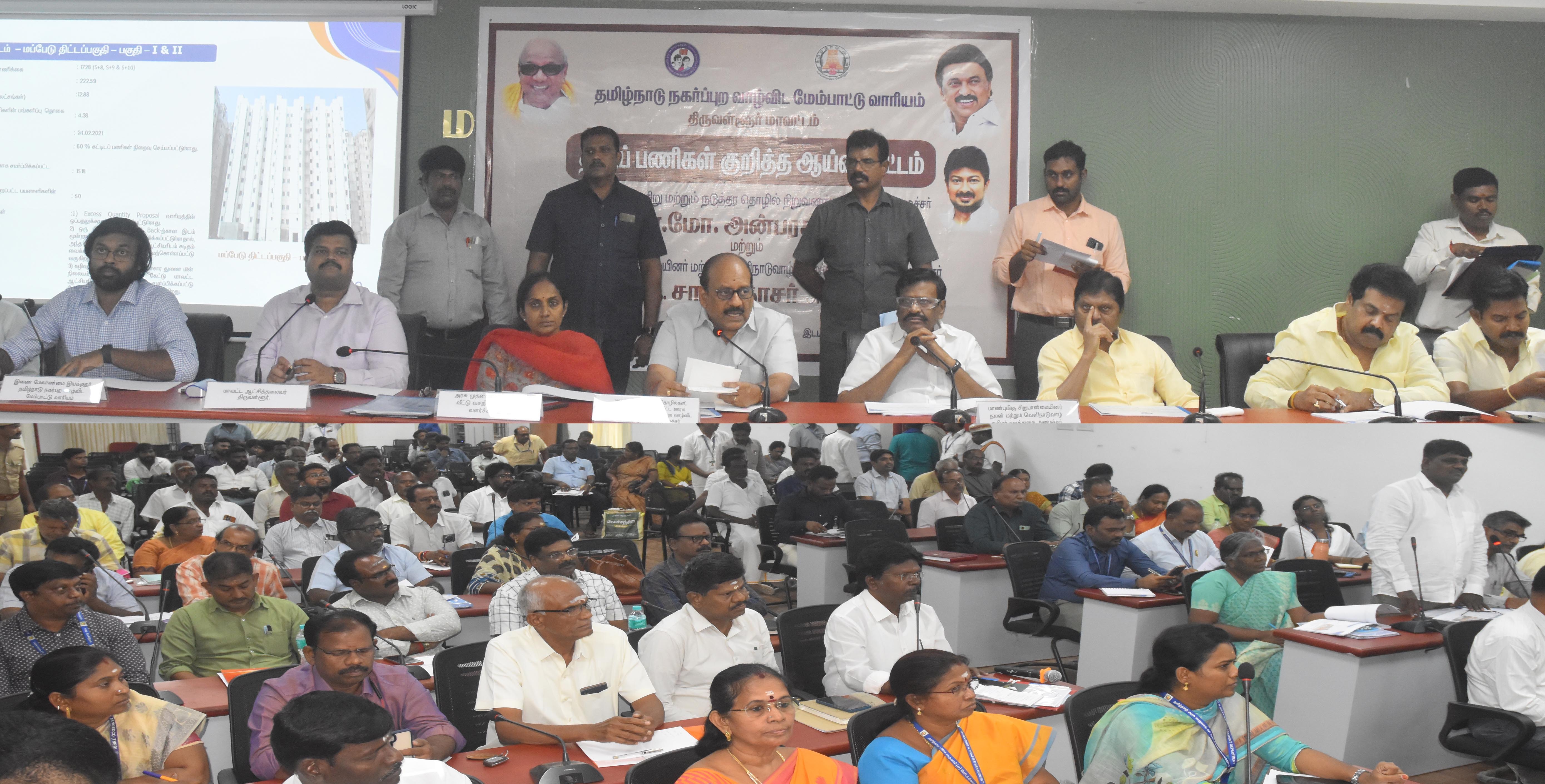 திருவள்ளூர் மாவட்டத்தில் 8032 அடுக்குமாடி குடியிருப்புகளின் கட்டுமானப் பணிகளை விரைந்து முடிக்க வேண்டும் : குறு, சிறு மற்றும் நடுத்தரத் தொழில் நிறுவனங்கள் துறை அமைச்சர் தா.மோ.அன்பரசன் அறிவுறுத்தல் :