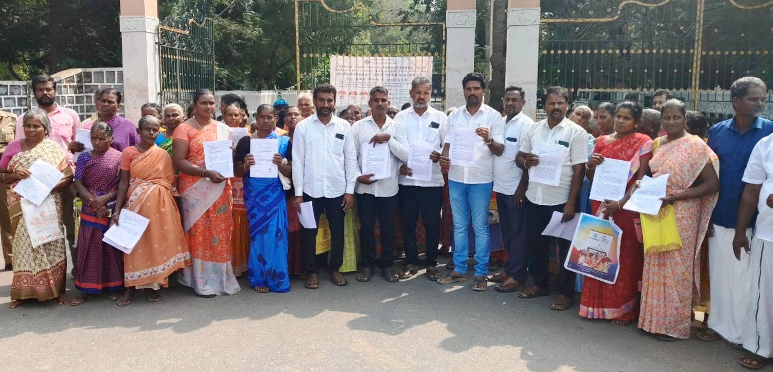மெய்யூர் கிராமத்தில் இலவச வீட்டுமனை வழங்கும் திட்டத்தின் கீழ் வழங்கப்பட்ட நிலத்தை முறையாக அளவீடு செய்து வழங்காமல் அலைக்கழிப்பு : மாவட்ட ஆட்சியர் அலுவலகம் முற்றுகை :
