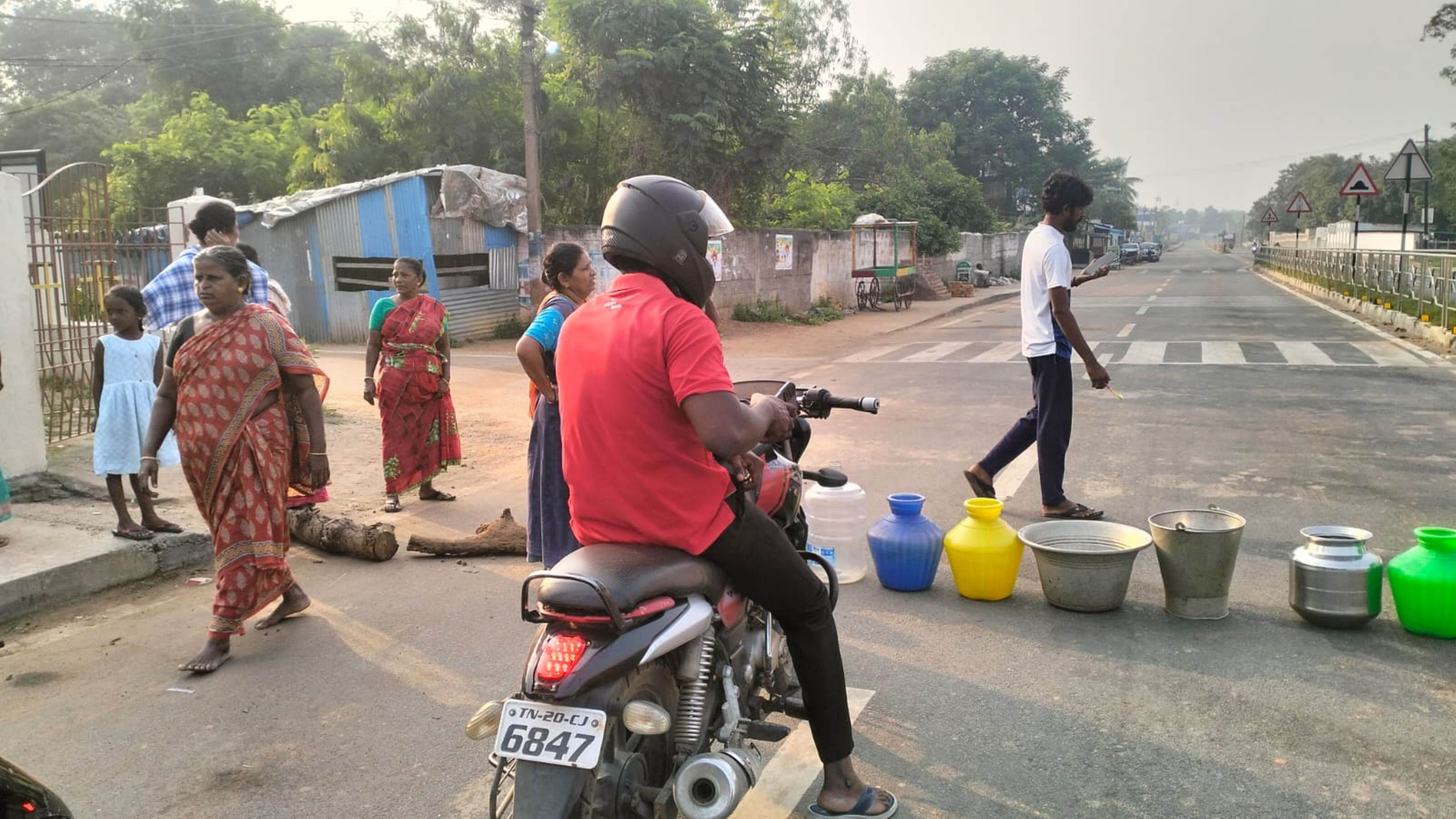 பண்ணுர் அந்தோனியார்புரத்தில் முறையாக குடிநீர் வழங்காததை கண்டித்து காலி குடங்களுடன் சாலை மறியல்: