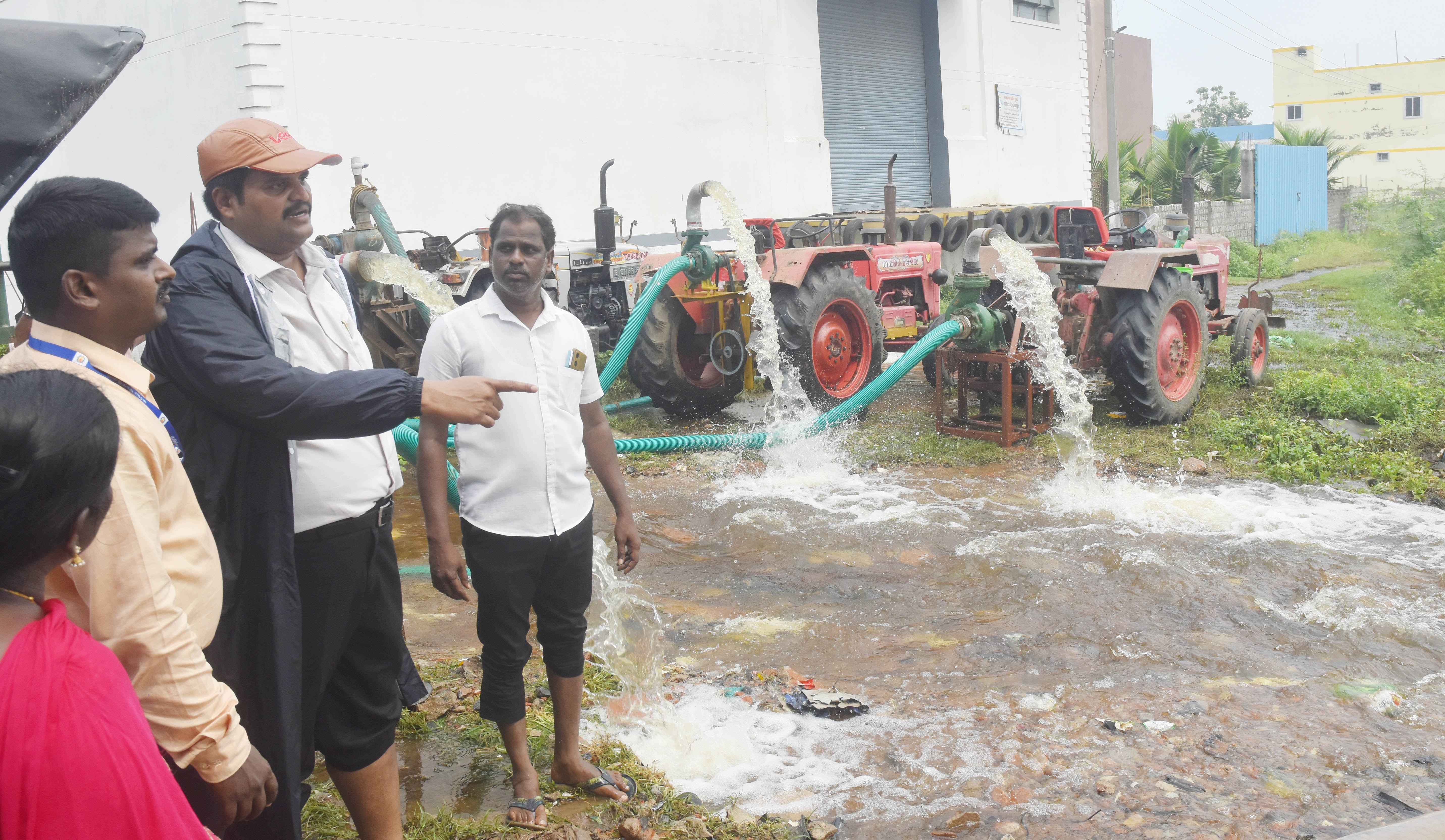 தீர்த்தம்கரயம்பட்டு, விளாங்காடுபாக்கம் ஆகிய மழையால் பாதிக்கப்பட்ட பகுதிகளில் மழைநீரை வெளியேற்றும் பணிகளை மாவட்ட ஆட்சியர் த.பிரபு சங்கர் பார்வையிட்டு ஆய்வு :