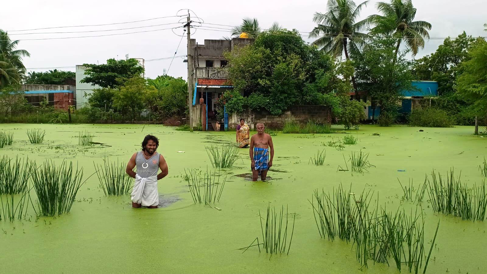 காக்களூர் பூந்தோட்டம் தெருவில் உள்ள 50 குடியிருப்புகளை கழிவுநீர் கலந்த மழை நீர் முழங்கால் அளவில் சூழ்ந்து இருப்பதால் மக்கள் வீட்டை விட்டு வெளியேற முடியாமல் பாதிப்படைந்துள்ளனர் :