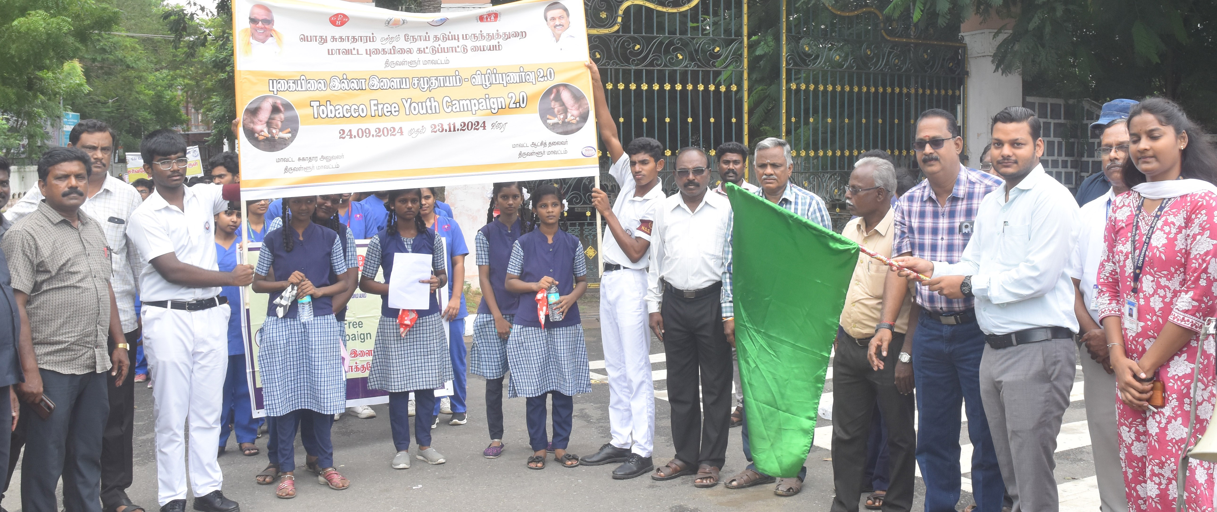 திருவள்ளூர் மாவட்ட ஆட்சியர் அலுவலக வளாகத்தில் புகையில்லா இளைய சமுதாயத்தை உருவாக்குவது தொடர்பாக விழிப்புணர்வு பேரணி : உதவி ஆட்சியர் (பயிற்சி) ஆயுஷ்குப்தா கொடியசைத்து துவக்கி வைத்தார் :
