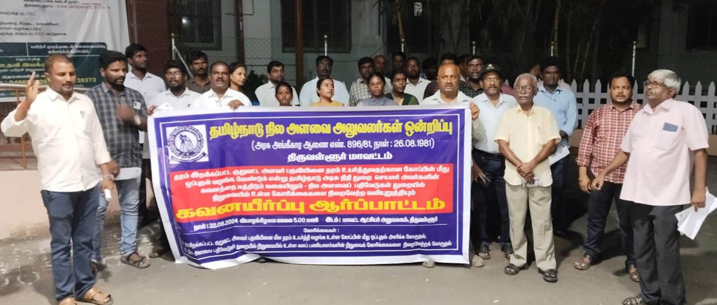 திருவள்ளூரில் தமிழ்நாடு நில அளவை அலுவலர்கள் ஒன்றிப்பு சார்பில் கவன ஈர்ப்பு ஆர்ப்பாட்டம் :