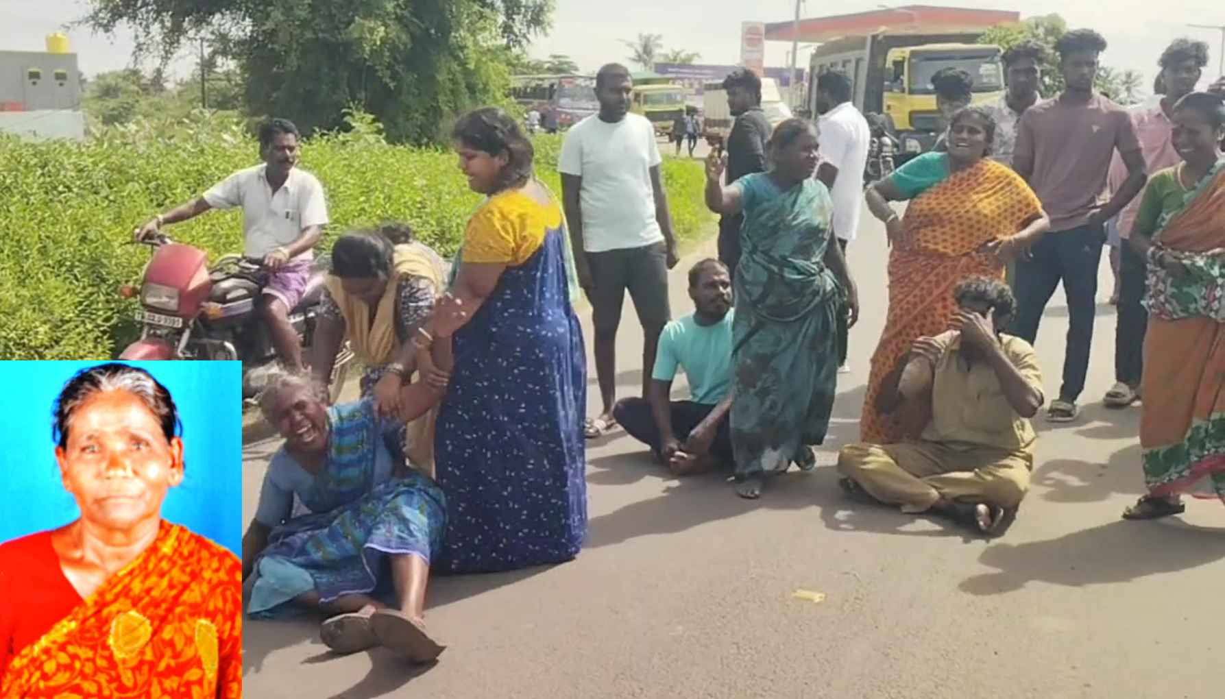 திருவள்ளூர் அடுத்த திருப்பாச்சூரில் மணல் ஏற்றி செல்வதற்காக வந்த லாரி மோதி பெண் பலி : கிராம மக்கள் சாலை மறியல் :