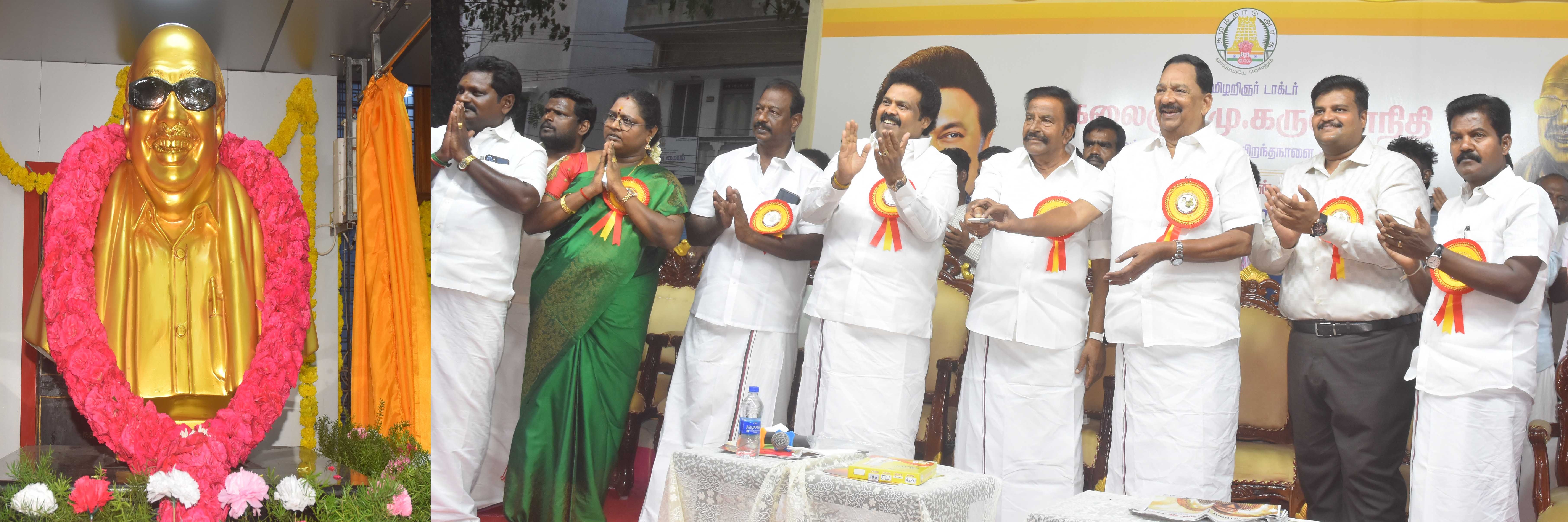 திருவள்ளூர் நகராட்சி அலுவலக வளாகத்தில் கலைஞர் திருவுருவச் சிலை : அமைச்சர்கள் கே. என். நேரு,ஆர். காந்தி ஆகியோர் திறந்து வைத்தனர் :