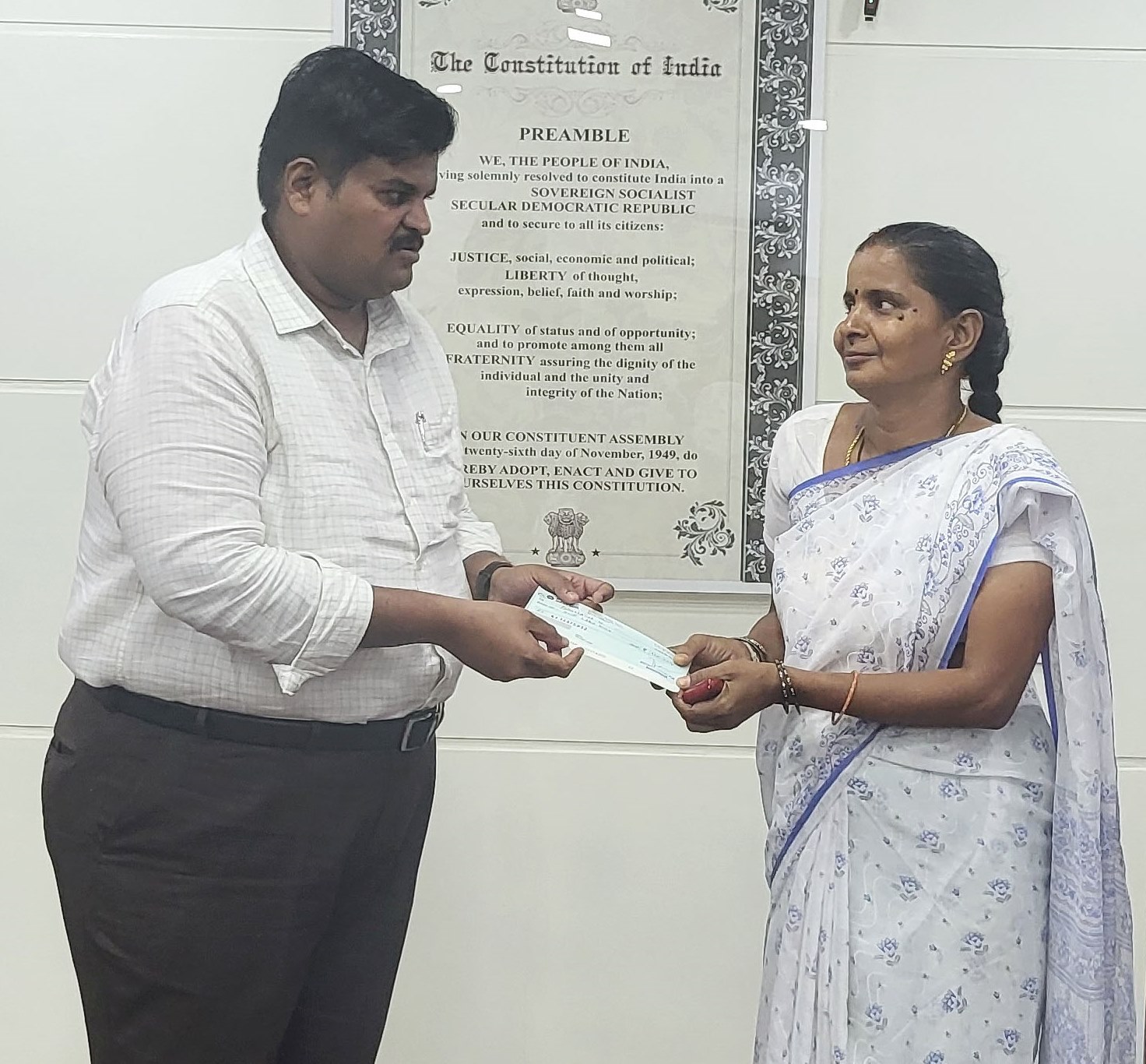 நீரில் மூழ்கி இறந்தவர்களின் குடும்பத்தினர்களின் வாரிசுதாரர்களுக்கு தலா ரூ.1 இலட்சத்திற்கான காசோலை : திருவள்ளூர் மாவட்ட ஆட்சியர் த.பிரபு சங்கர் வழங்கினார் :