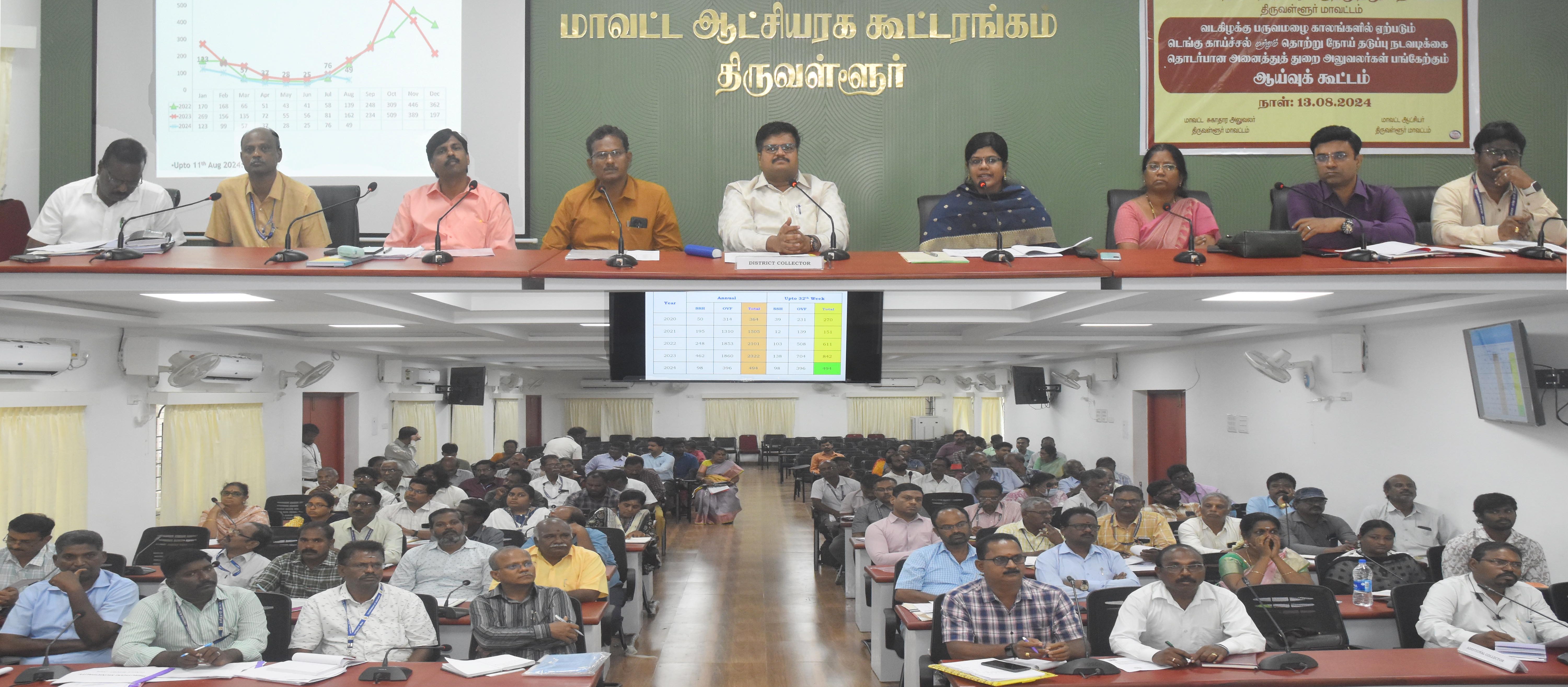 திருவள்ளூரில் டெங்கு காய்ச்சல் மற்றும் தொற்று நோய் தடுப்பு நடவடிக்கை பணிகள் குறித்து அனைத்து துறை அலுவலர்களுடன் ஆய்வுக் கூட்டம் :