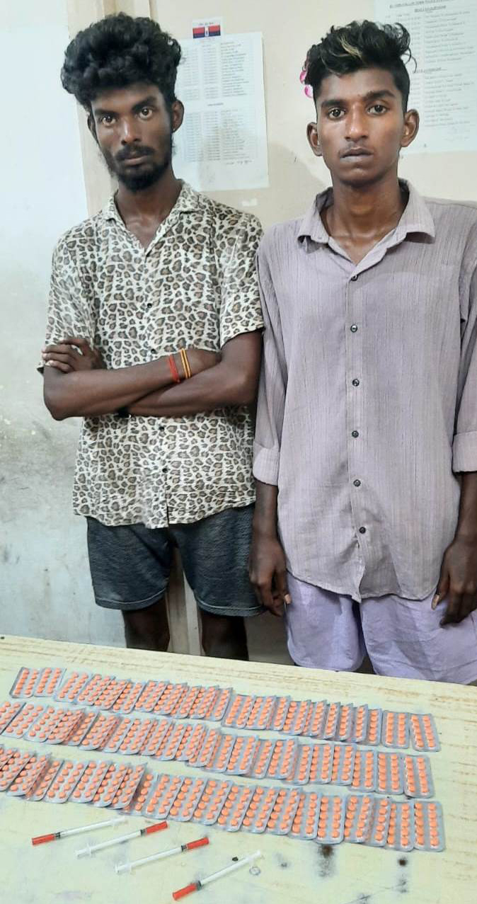 திருவள்ளூர் ரயில் நிலையம் அருகே விற்பனைக்காக போதை மாத்திரை வைத்திருந்த 2 இளைஞர்கள் கைது :