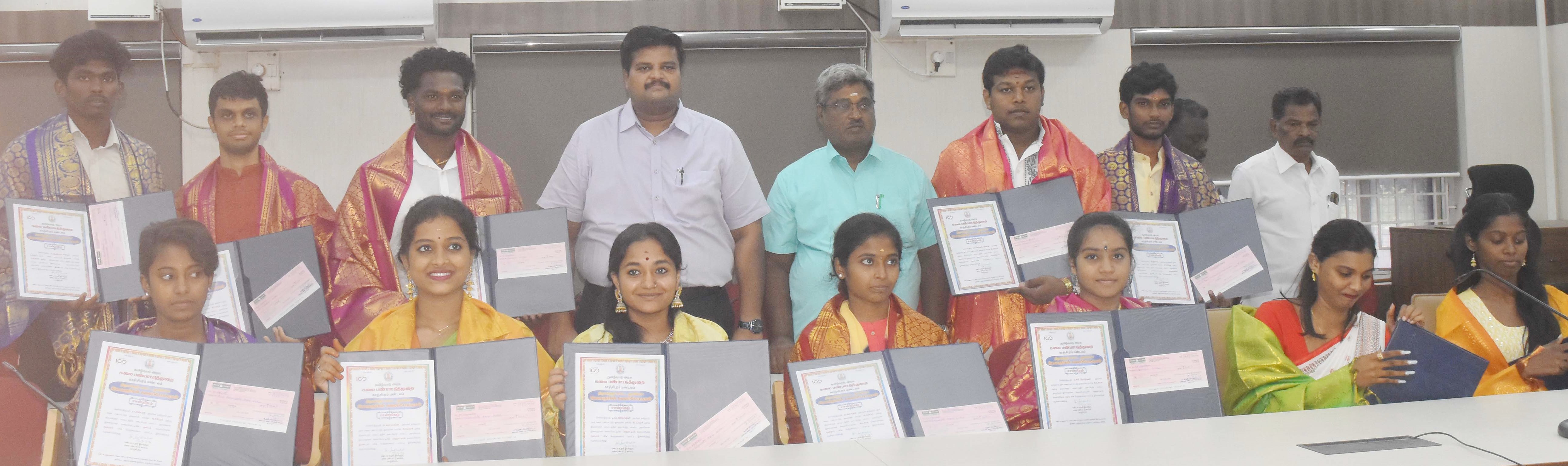 திருவள்ளூர் மாவட்ட அளவிலான கலைப் போட்டிகளில் வெற்றியாளர்களுக்கு காசோலை மற்றும் பாராட்டு சான்றிதழ் : மாவட்ட ஆட்சியர் த. பிரபு சங்கர் வழங்கி கௌரவித்தார் :