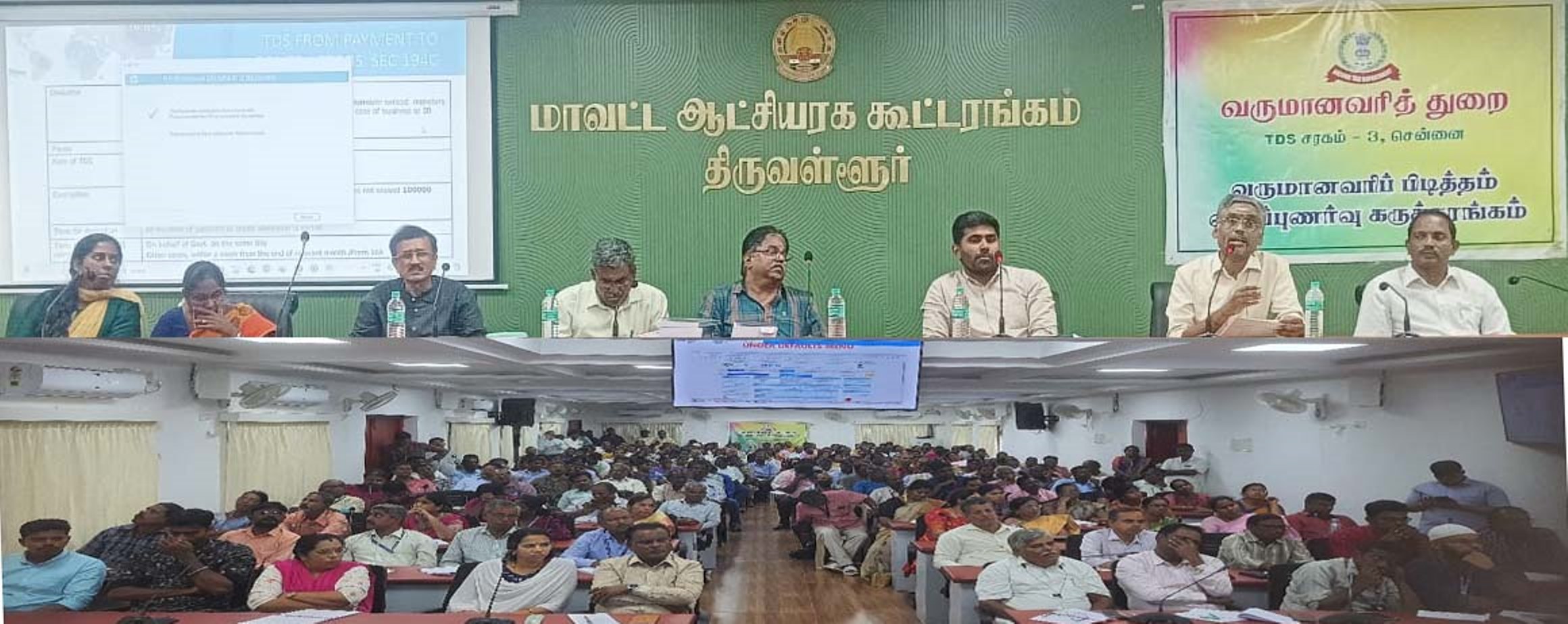 திருவள்ளூர் மாவட்ட ஆட்சியர் அலுவலக கூட்டரங்கில் கருவூல ஆணையரகம், தமிழ் நாடு அரசாங்கம், சென்னை இணைந்து வருமானவரி பிடித்தம் விழிப்புணர்வு கருத்தரங்கம் :
