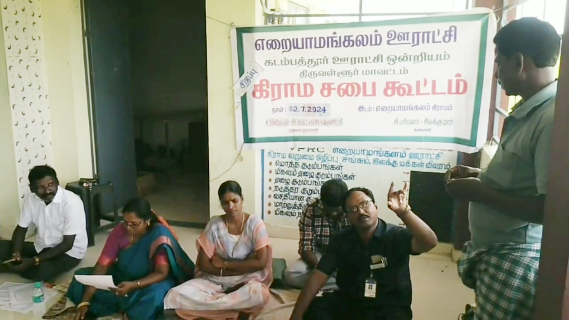 எறையாமங்கலம் ஊராட்சியில் தண்ணீர் டேங்கில் காக்கா இறந்து கிடப்பதால் மாற்று ஏற்பாடு செய்ய கிராம சபை கூட்டத்தில் பொதுமக்கள் கோரிக்கை :