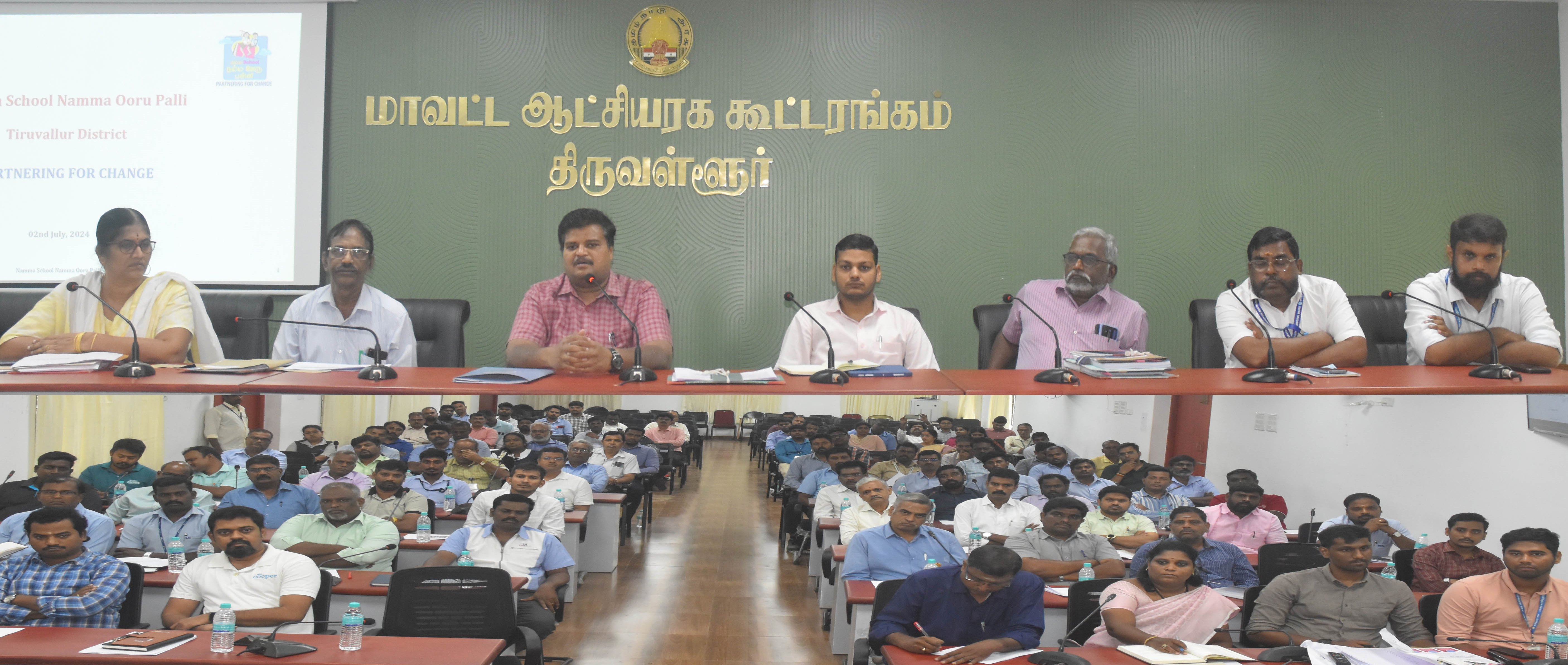 திருவள்ளூரில் நம்ம பள்ளி நம்ம ஊர் பள்ளி திட்டத்தின் கீழ் அரசு பள்ளிக்கு தேவையான அடிப்படை வசதிகளை பெறுவதற்கான ஒருங்கிணைப்பு குழு கூட்டம்