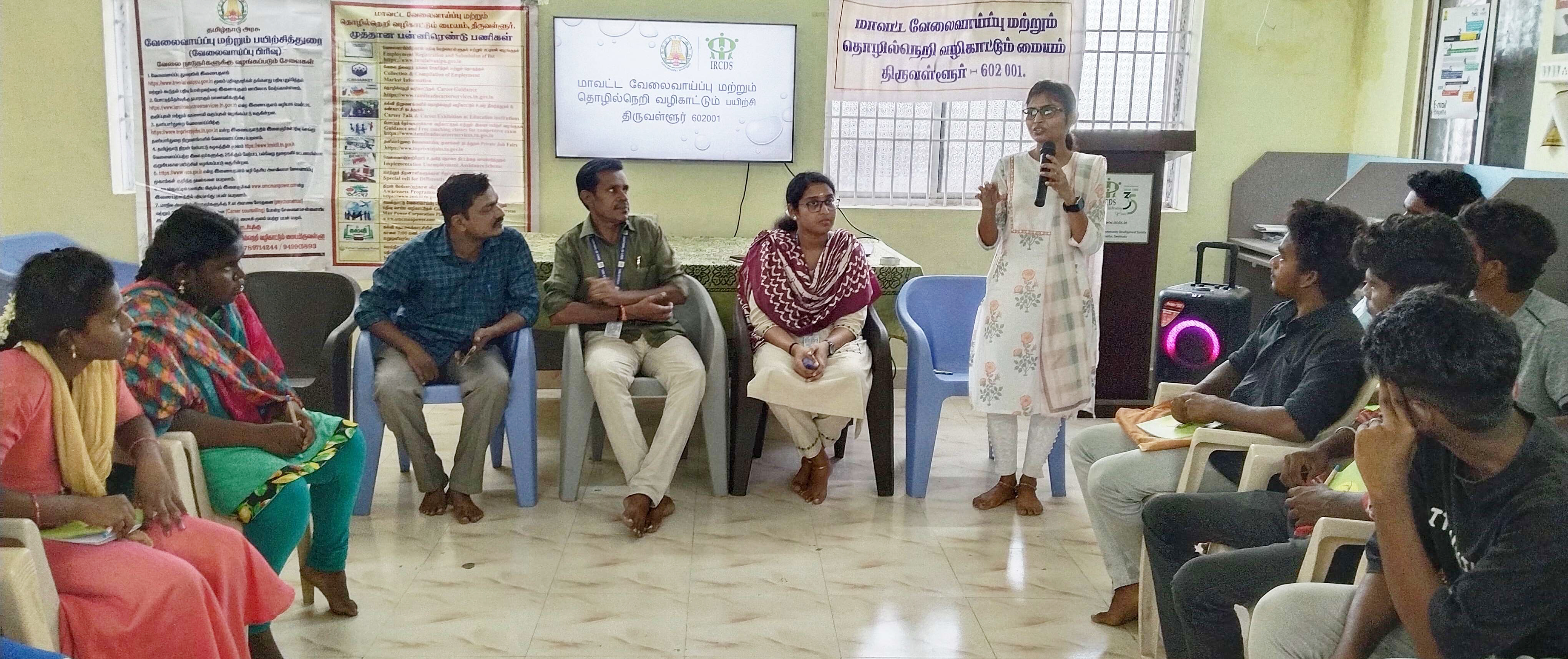 திருவள்ளூரில் பள்ளி இடைநிற்றவர்களுக்கான தொழில்நெறி வழிகாட்டி மற்றும் வேலை வாய்ப்பு குறித்த விழிப்புணர்வு நிகழ்ச்சி :