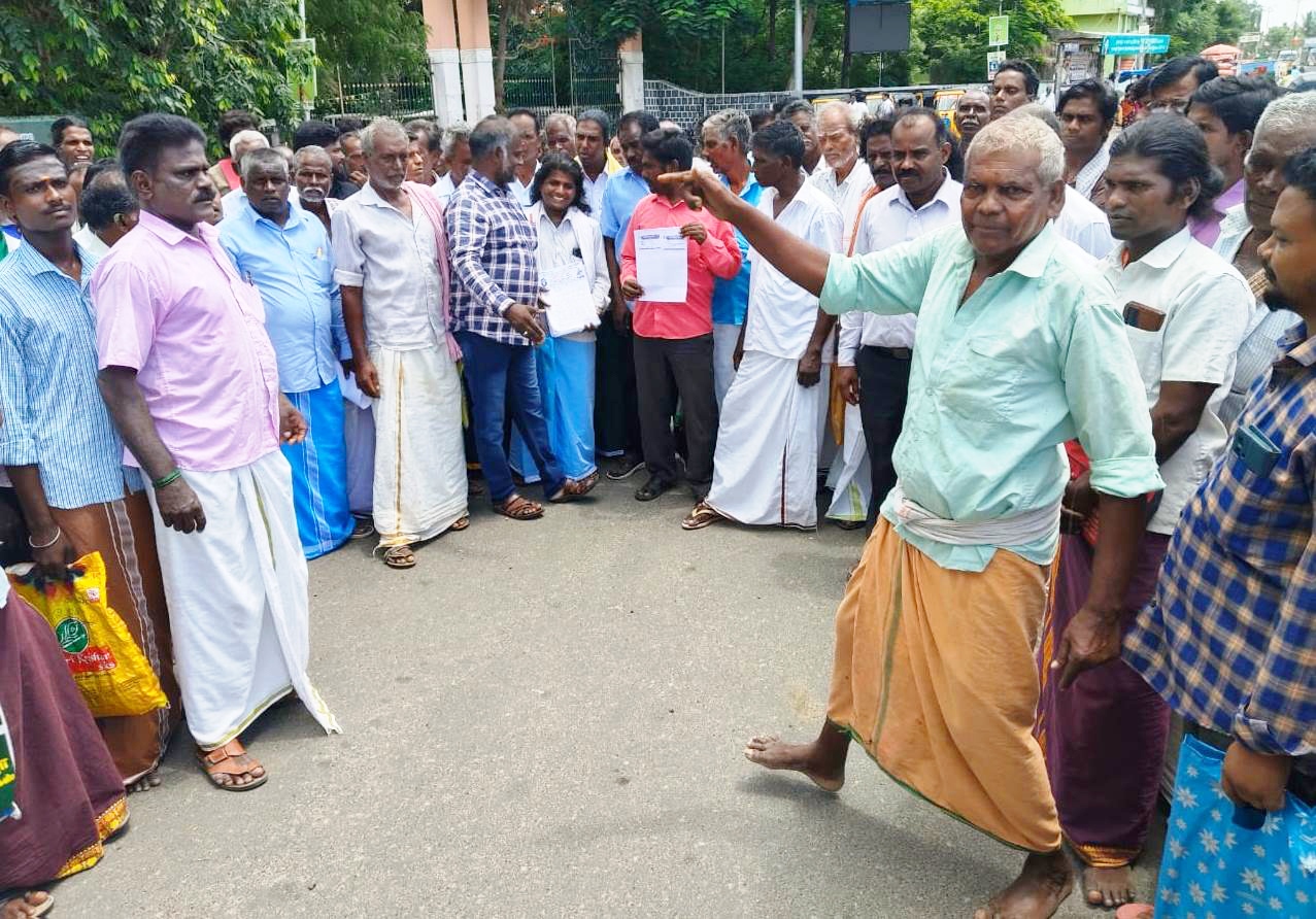 வீட்டுமனை வழங்கக் கோரி தெருக்கூத்து கலைஞர்கள் திருவள்ளூர் கலெக்டர் அலுவலகத்தில் பாட்டுப் பாடி, நடனமாடி கோரிக்கை மனு :