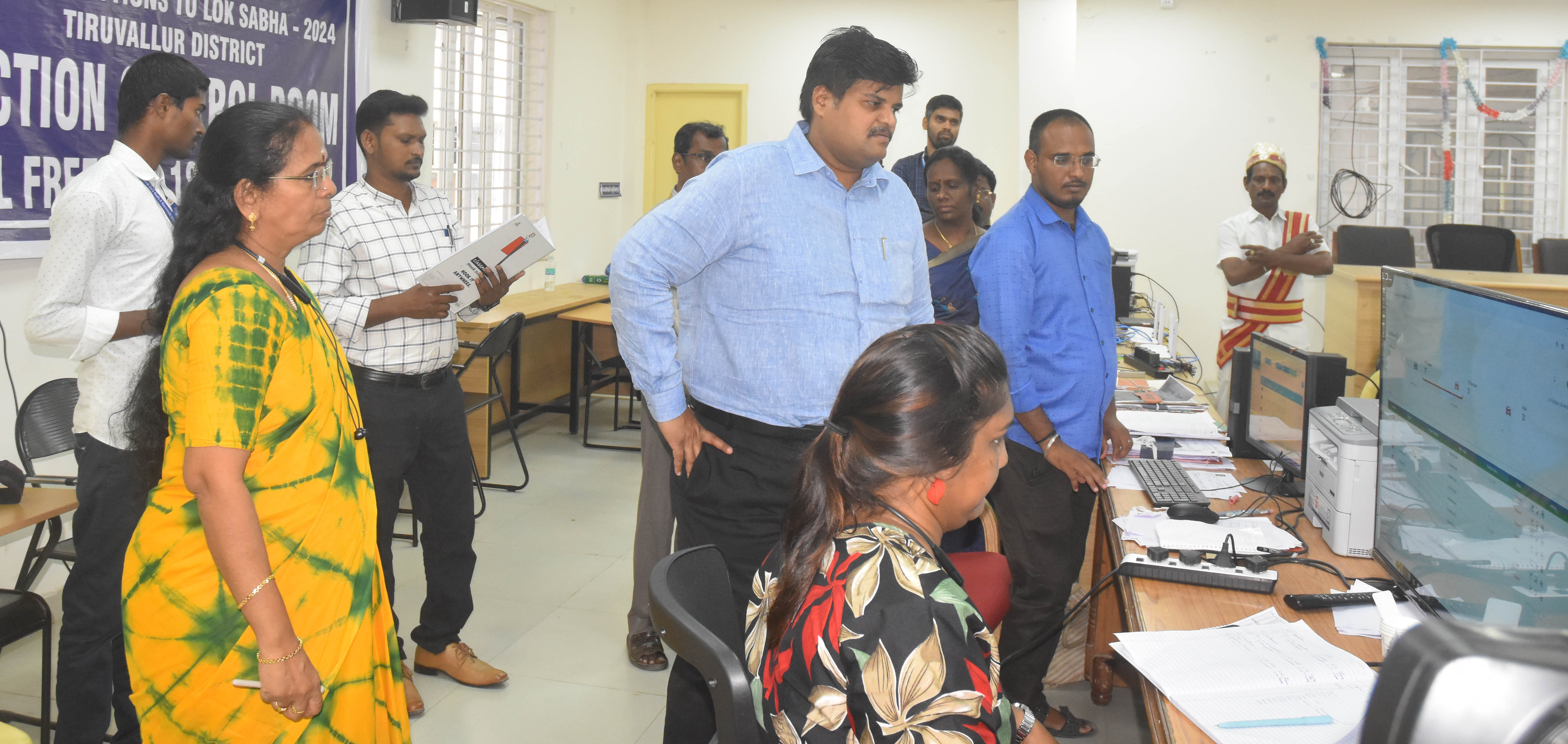 திருவள்ளூர் மாவட்ட ஆட்சியர் அலுவலகத்தில் அமைக்கப்பட்டுள்ள தேர்தல் கட்டுப்பாட்டு மையத்தில் தேர்தல் பணிகள் : மாவட்ட தேர்தல் அலுவலர் த.பிரபுசங்கர் ஆய்வு :