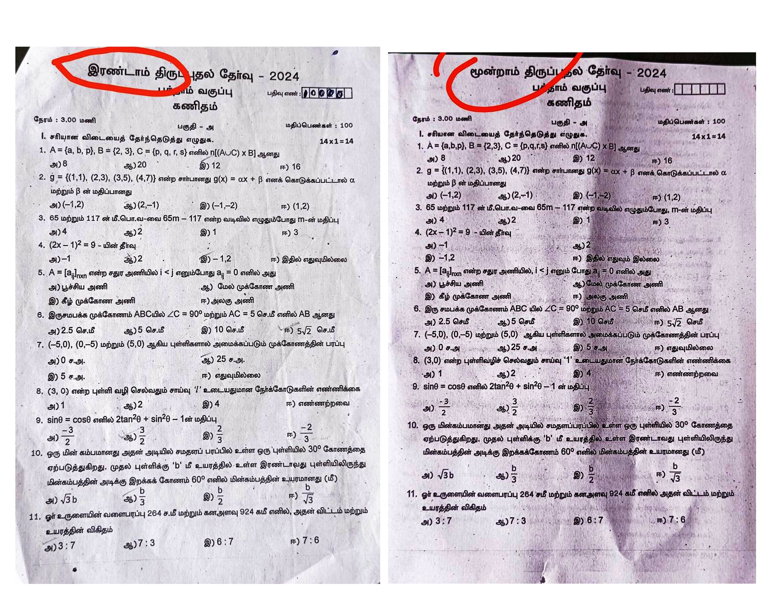 பத்தாம் வகுப்பு 3-ஆம் திருப்புதல் தேர்வு வினாத்தாளில் குளறுபடி : 2-ம் திருப்புதல் தேர்வில் வந்த அதே வினா வந்ததால் மாணவர்கள் அதிர்ச்சி :