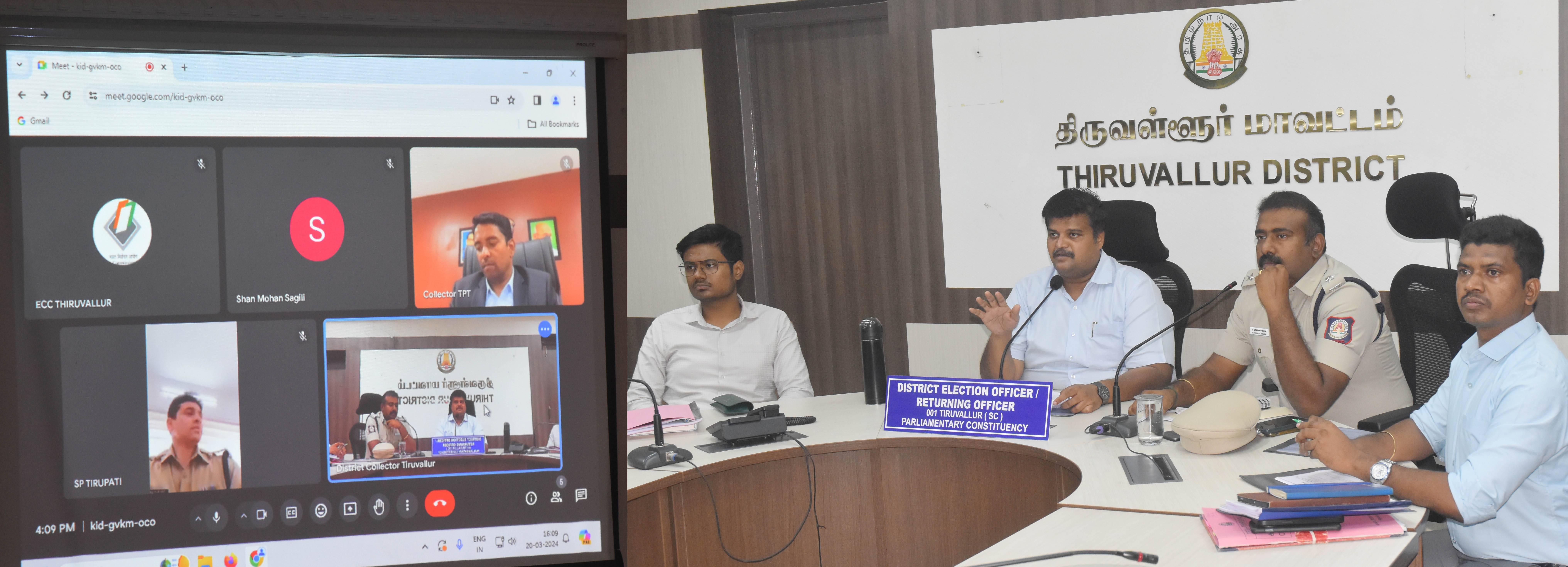 தமிழ்நாடு, ஆந்திர மாநில எல்லைப் பகுதியில் சட்டவிரோதமாக நடக்கும் மதுபானம் விற்பனை மற்றும் தேர்தல் நடத்தை விதிமீறல்களை கண்காணிக்க நடவடிக்கைகள் மேற்கொள்வது குறித்து கலந்தாலோசனை கூட்டம் :