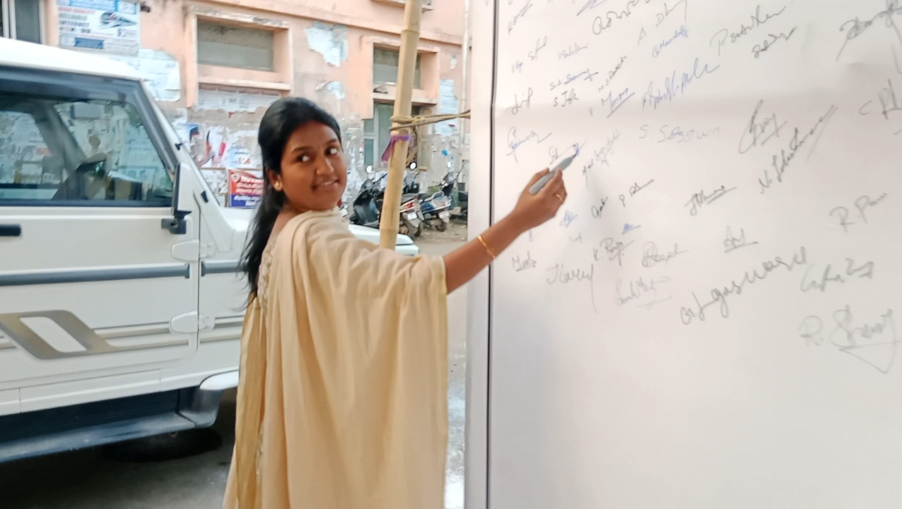 திருவள்ளூர் ரயில் நிலையம் அருகே நகராட்சி சார்பில் எனது வாக்கு எனது உரிமை கையெழுத்து இயக்கம் : நகராட்சி ஆணையர் தொடங்கி வைத்தார் :