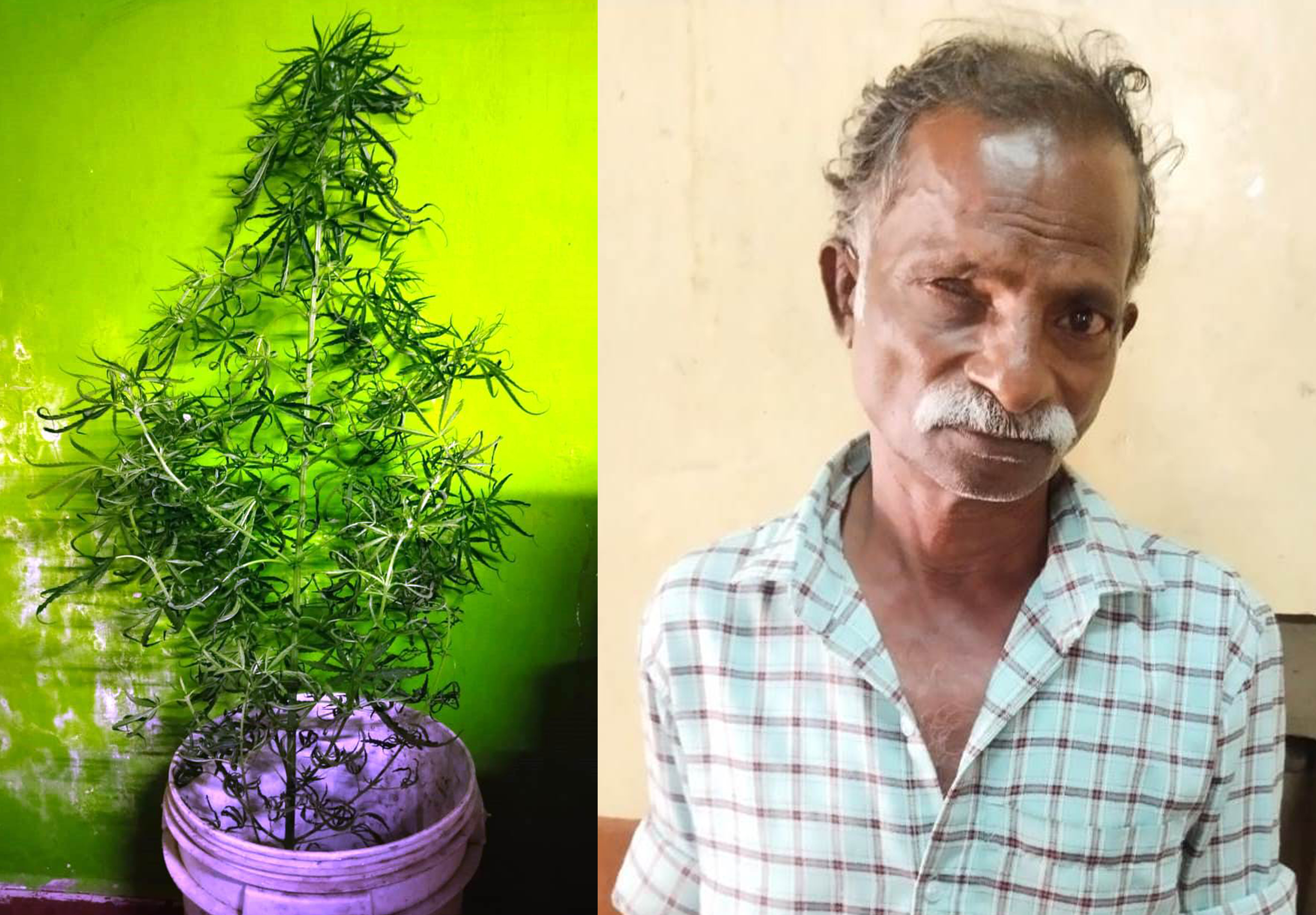 திருத்தணி அருகே கஞ்சா செடி வளர்த்த 62 வயது முதியவர் கைது : மதுவிலக்குப் பிரிவு போலீசார் அதிரடி :