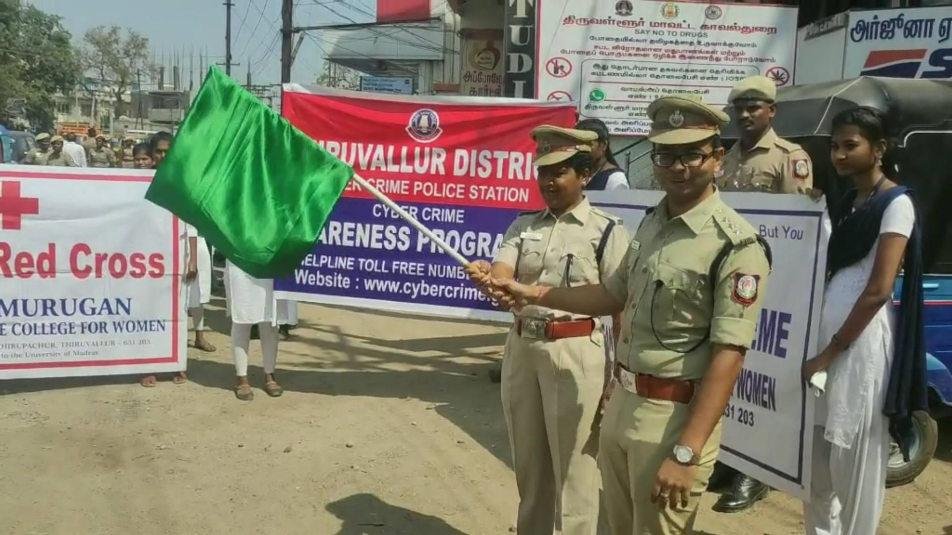 திருவள்ளூர் மாவட்ட இணையவழி குற்றம் மூலம் ஏற்படும் குற்றங்களை தடுப்பது குறித்து விழிப்புணர்வு பேரணி : திருவள்ளூர் ஏடிஎஸ்பி மீனாட்சி, ஏ.எஸ்பி.,விவேகானந்தா சுக்லா ஆகியோர் கொடியசைத்து துவக்கி வைத்தனர் :