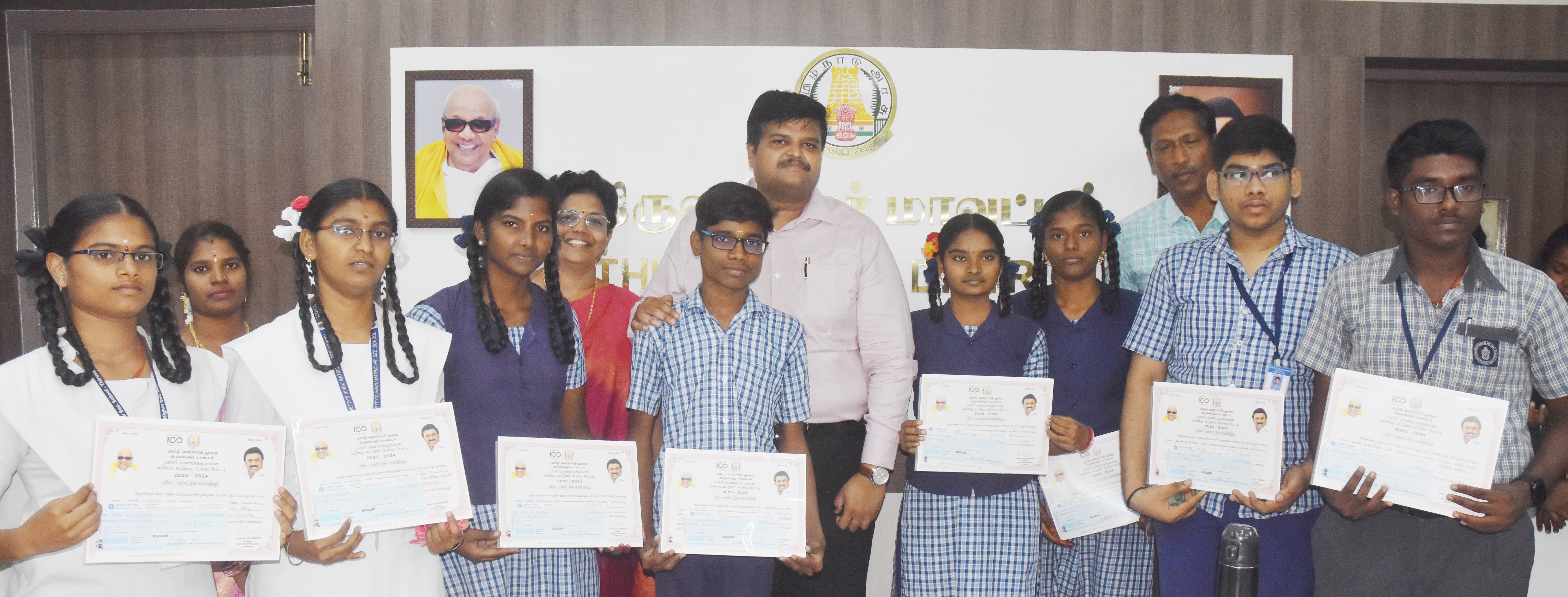 திருவள்ளூர் மாவட்டத்தில் கவிதை, கட்டுரை, பேச்சுப் போட்டிகளில் வெற்றிப்பெற்ற பள்ளி, கல்லூரி மாணவ, மாணவிகளுக்கு காசோலை, பாராட்டுச் சான்றிதழ்கள் : மாவட்ட ஆட்சியர் த. பிரபுசங்கர் வழங்கினார் :