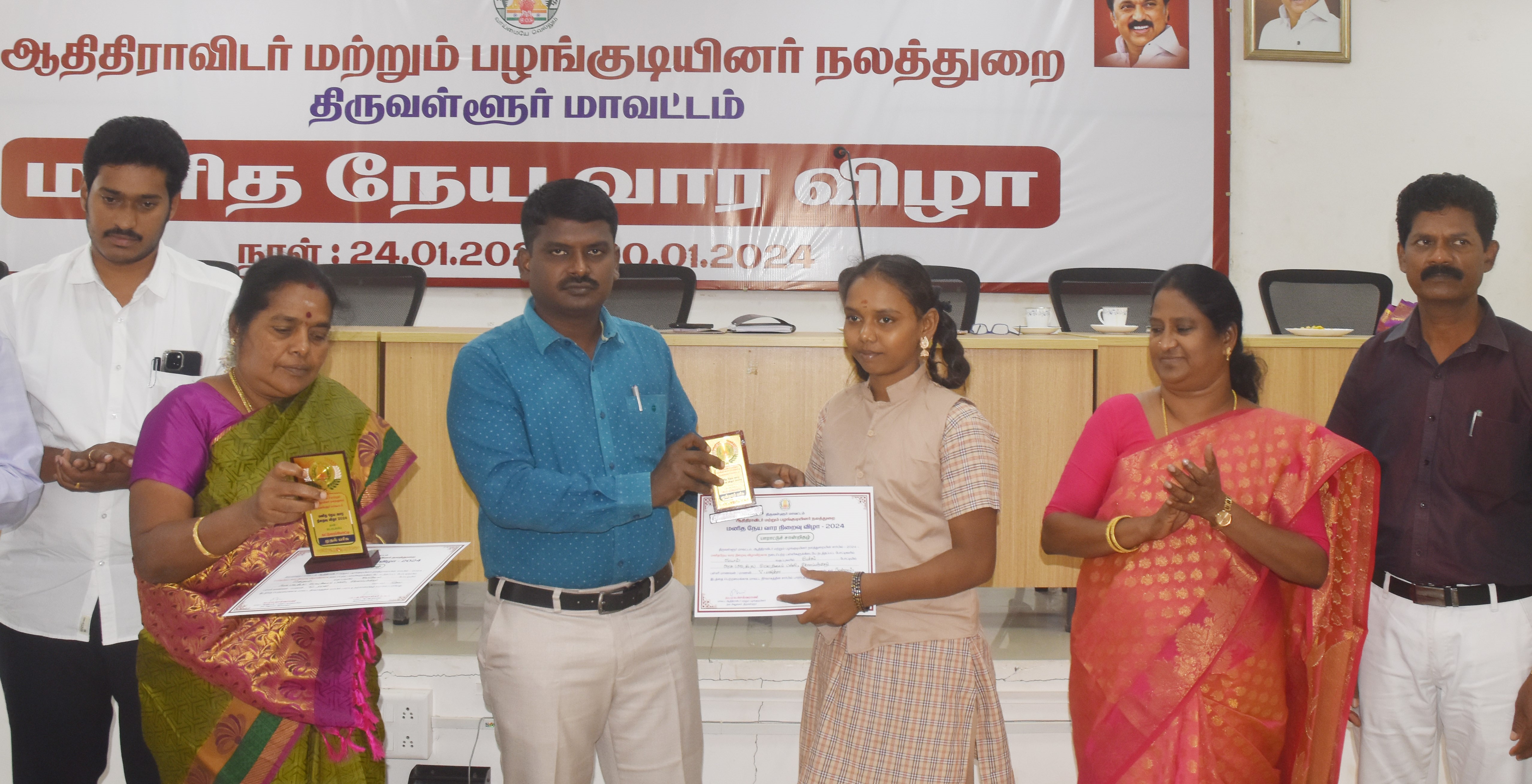 திருவள்ளூர் மாவட்ட ஊரக வளர்ச்சி முகமை கூட்ட அரங்கில் மனித நேர வார விழா மாணவ மாணவிகளுக்கு பரிசுகள் : மாவட்ட வருவாய் அலுவலர் ஆ.ராஜ்குமார் வழங்கினார் :