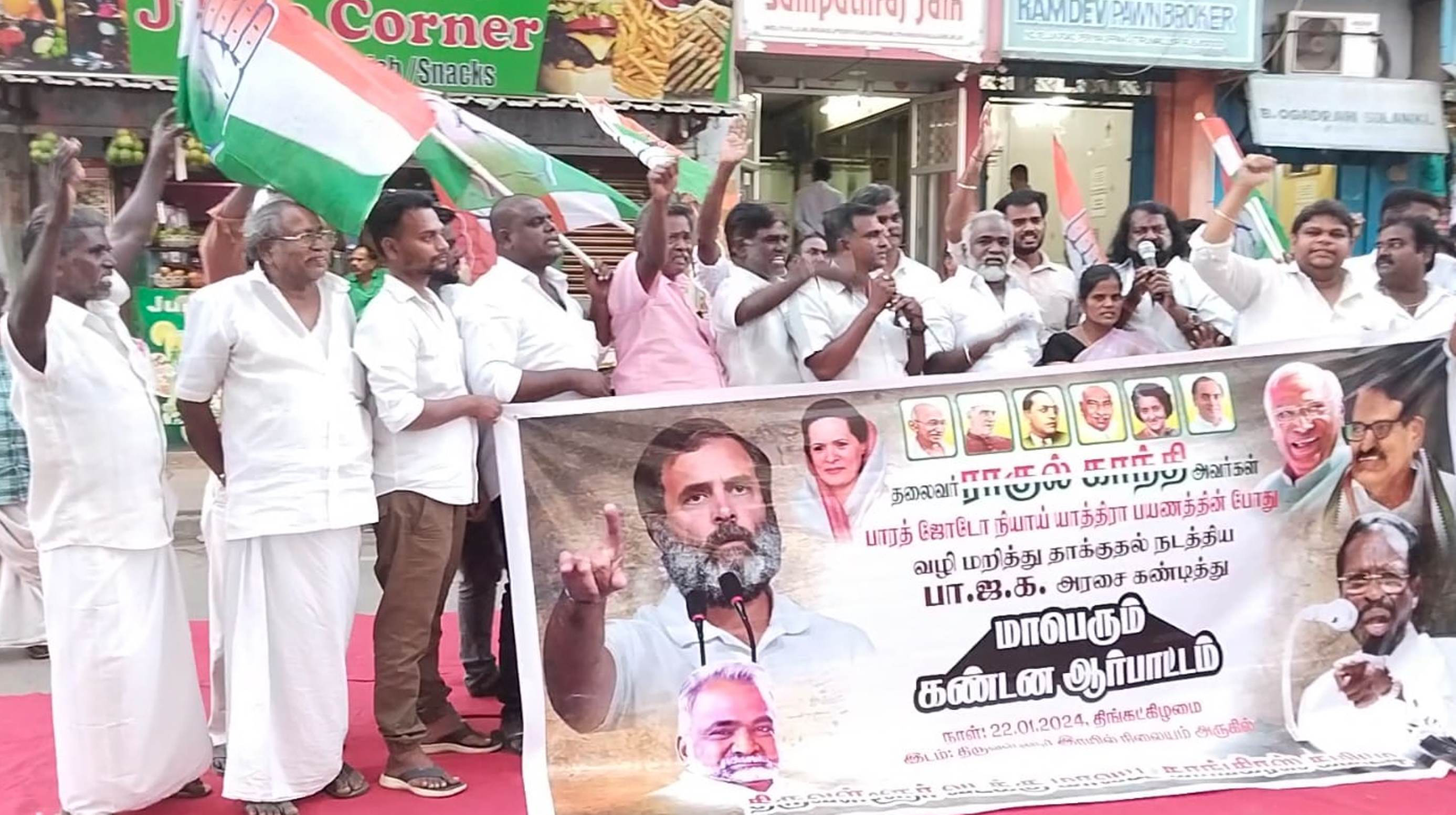 திருவள்ளூர் வடக்கு மாவட்ட காங்கிரஸ் கமிட்டி சார்பில் பாரத் ஜோடா நியாய் யாத்ரா பயணத்தின் போது வழி மறித்து தாக்குதல் நடத்திய பாஜக அரசைக் கண்டித்து ஆர்ப்பாட்டம் :