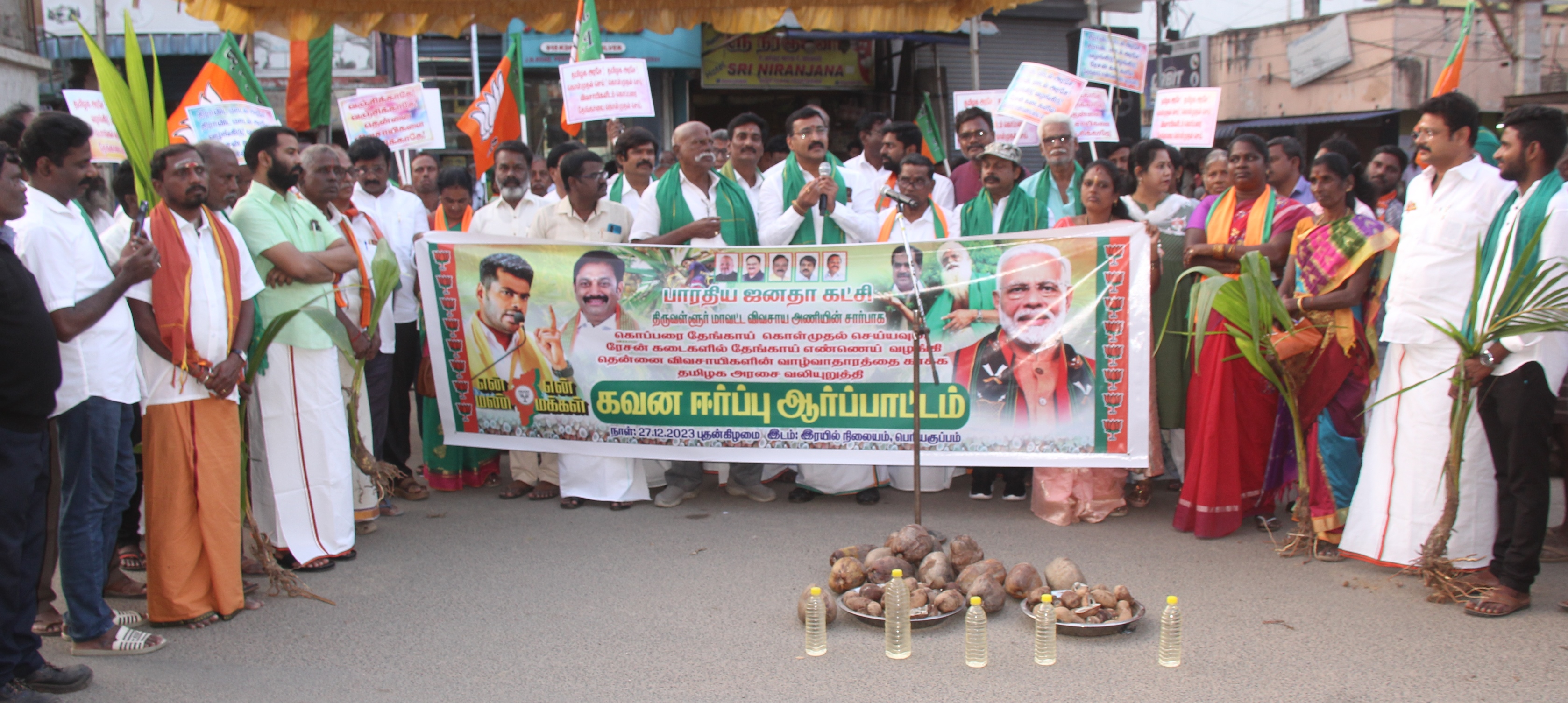 திருவள்ளூரில் பா.ஜ.க விவசாயிகள் அணி சார்பில் கவன ஈர்ப்பு ஆர்ப்பாட்டம் :