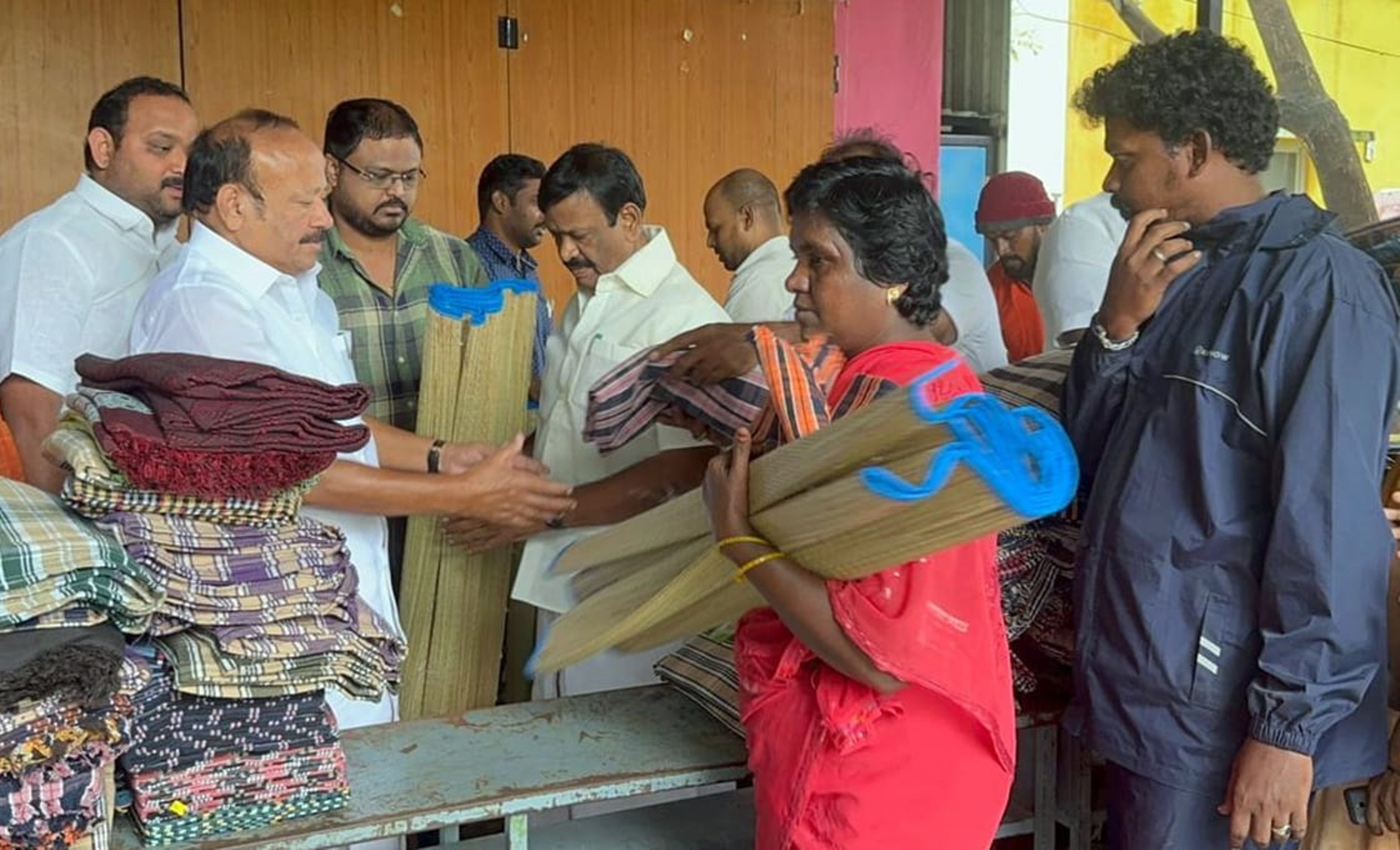 திருவேற்காடு நகராட்சி பகுதிகளில் வெள்ளத்தால் பாதிக்கப்பட்ட மக்களுக்கு வேளாண்மை- உழவர்நலத்துறை அமைச்சர் எம்.ஆர்.கே.பன்னீர்செல்வம் நலத்திட்ட உதவிகளை வழங்கினார் :