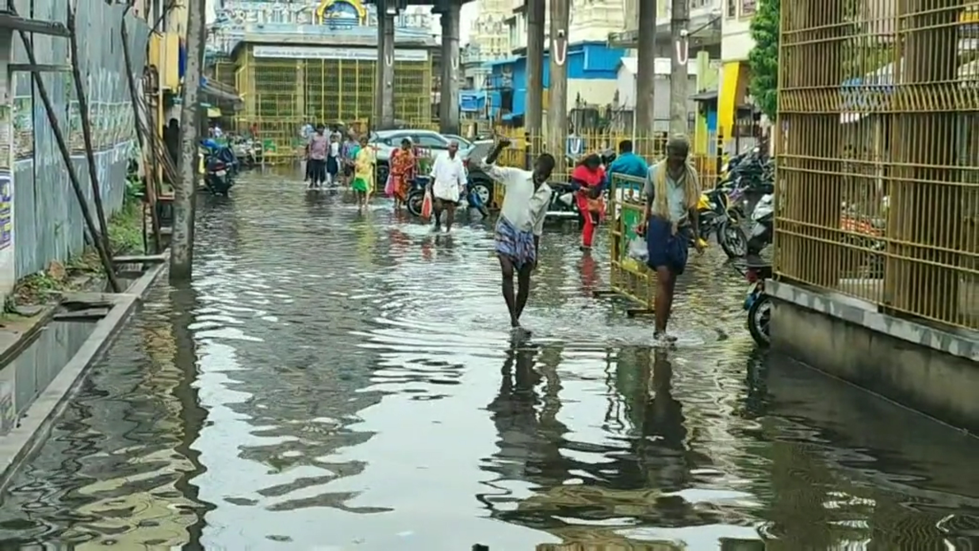 திருவள்ளூரில் திடீரென பெய்த மழையால் மாவட்ட ஆட்சியர் அலுவலகத்தில் நடைபெற்ற மக்கள் குறை தீர்க்கும் நாள் கூட்டத்திற்கு கோரிக்கை அளிக்க வந்த பொது மக்கள் மற்றும் வீரராகவர் கோயில் வளாகத்தில் கழிவு நீருடன் மழை நீரும் தேங்கி நிற்பதால் பக்தர்கள் அவதி :