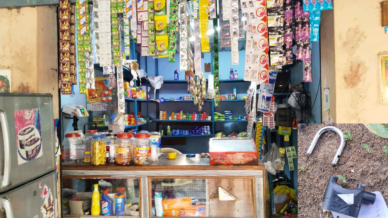 மணவூர் ரயில் நிலையம் அருகில் பல்பொருள் அங்காடி கடையின் பூட்டை உடைத்து பணம் மற்றும் பருப்பு எண்ணெய் உள்ளிட்ட மளிகைப் பொருட்கள் கொள்ளை
