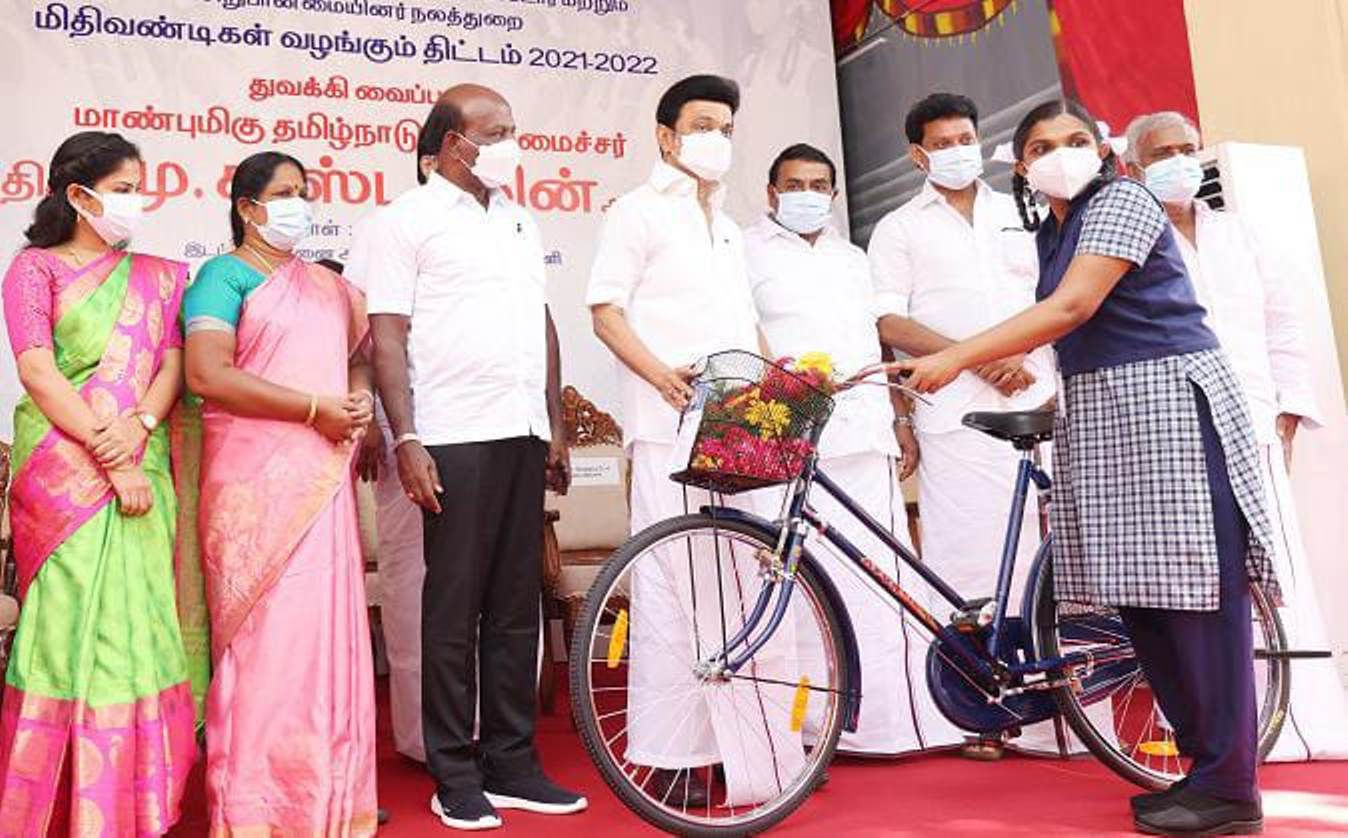 திருவள்ளூர் மாவட்டத்தில் பள்ளியில் பயிலும் மாணவ, மாணவியர்கள் குறித்த நேரத்தில் பள்ளிக்குச் சென்று வருவதற்கு எதுவாக விலையில்லா மிதிவண்டிகள் வழங்கிய தமிழ்நாடு முதலமைச்சர் மு.க.ஸ்டாலின் அவர்களுக்கு நெஞ்சார்ந்த நன்றிகளை தெரிவித்துக் கொண்டனர் :