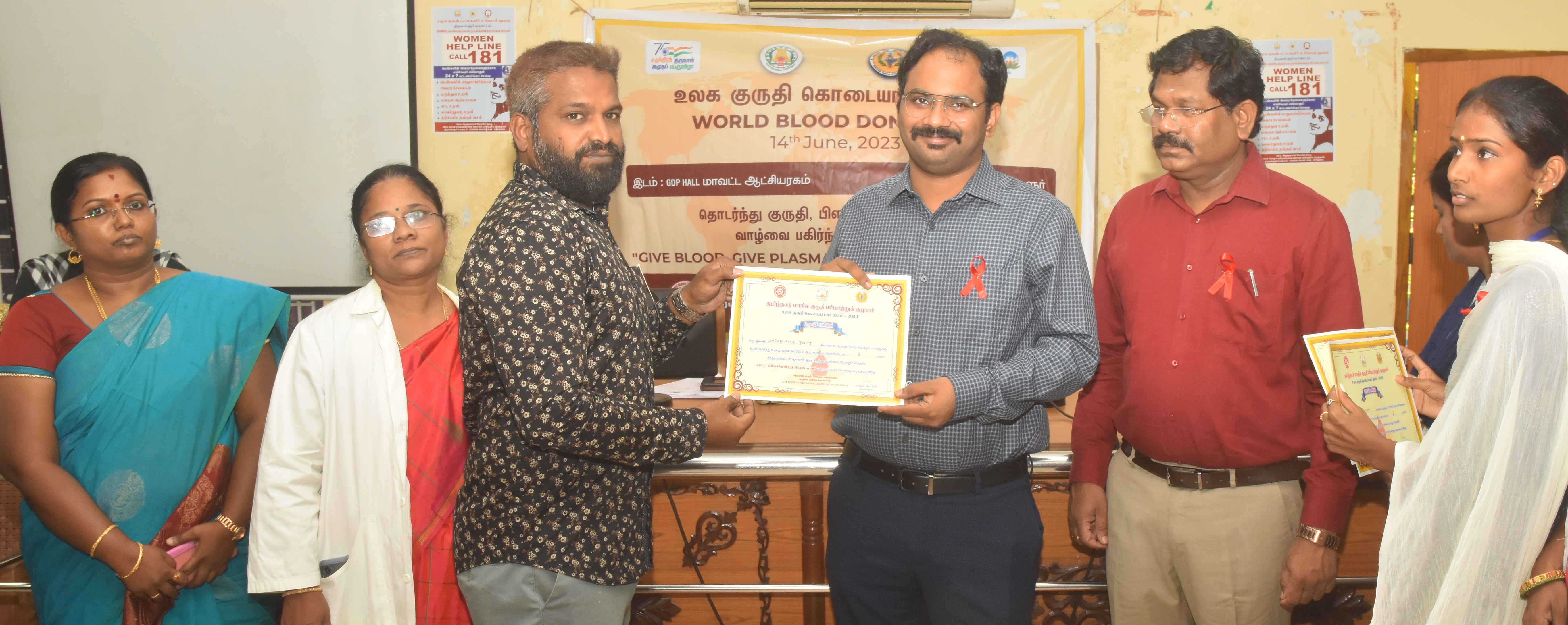 திருவள்ளூரில் மாவட்ட எய்ட்ஸ் தடுப்பு மற்றும் கட்டுப்பாடு அலகு சார்பாக உலக இரத்த கொடையாளர் தின விழா