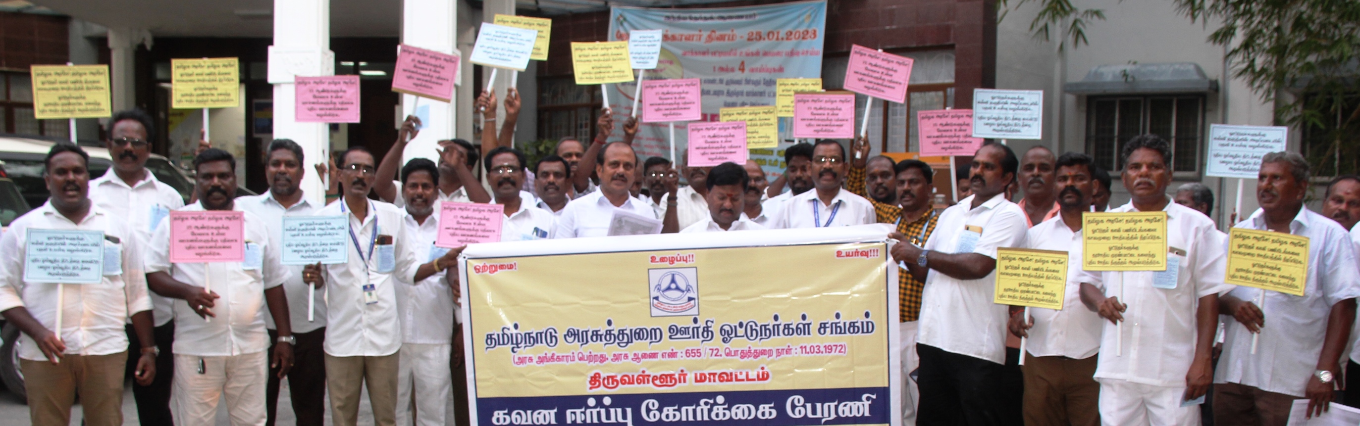 திருவள்ளூரில் பல்வேறு கோரிக்கைகளை வலியுறுத்தி தமிழ்நாடு அரசுத்துறை ஊர்தி ஓட்டுநர்கள் சங்கத்தினர் கவன ஈர்ப்பு ஆர்ப்பாட்டம் :
