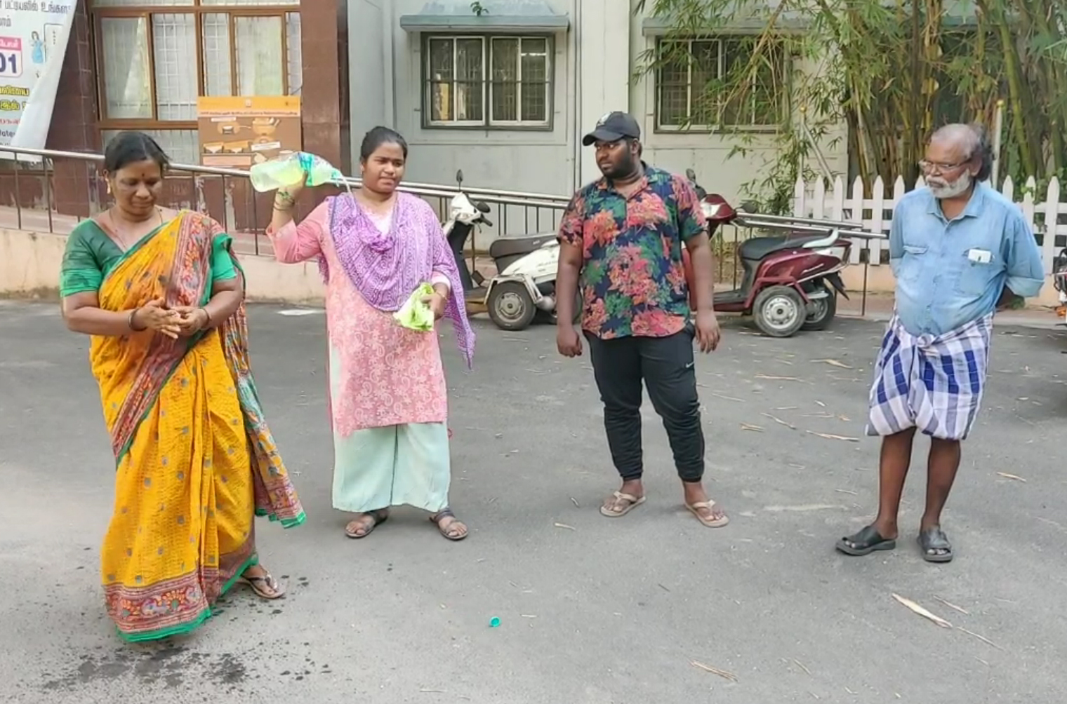 திருவள்ளூர் மாவட்ட ஆட்சியர் அலுவலக வளாகத்தில் மகன் மீது பொய்வழக்கு போடுவதாக கூறி காவல்துறையினரை கண்டித்து குடும்பத்துடன் மண்ணெண்ணெய் ஊற்றி தற்கொலை முயற்சி செய்ததால் பரபரப்பு :