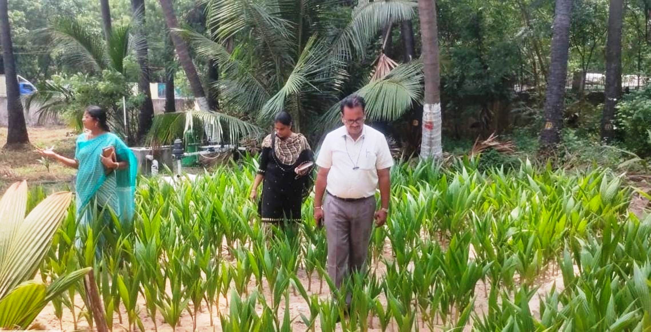 மாதவரம் அரசு தென்னை நாற்றுப் பண்ணையில் வேளாண்மை இணை இயக்குநர் எல்.சுரேஷ் ஆய்வு :