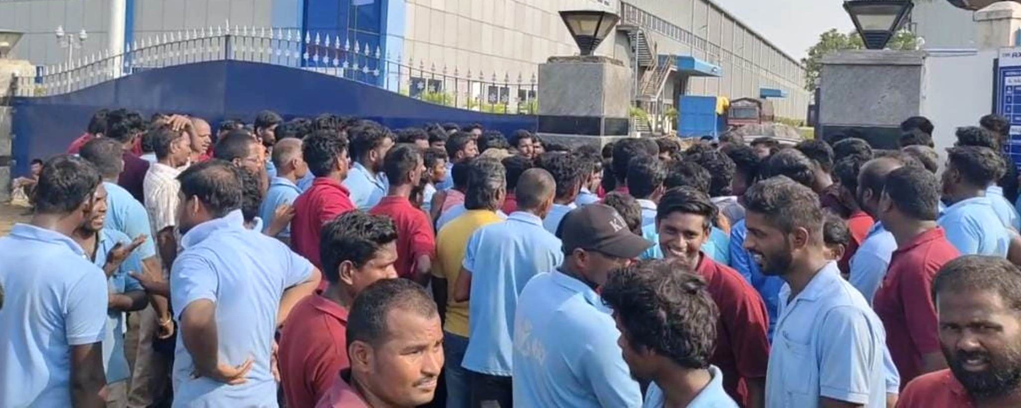 ஒதப்பையில் உள்ள தனியார் கார் உதிரிபாகங்கள் தயாரிக்கும் தொழிற்சாலையில் முறையாக ஊதியம் மற்றும் ஊக்கத் தொகை வழங்காததைக் கண்டித்து ஊழியர்கள் பணி புறக்கணிப்பு போராட்டம்