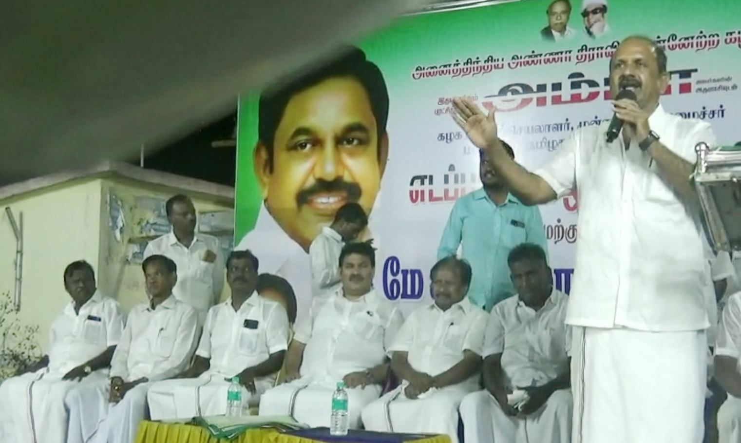 திருவள்ளூரில் கொட்டும் மழையிலும் மேற்கு மாவட்ட அதிமுக சார்பில் மே தின விழா பொதுக்கூட்டம் : 12 மணி நேரம் வேலை என அறிவித்துவிட்டு மீண்டும் அதனை வாபஸ் பெறுவதாக அறிவித்திருப்பது பொது மக்களை ஏமாற்றும் செயல் என முன்னாள் அமைச்சர் பி.வி.ரமணா குற்றச்சாட்டு